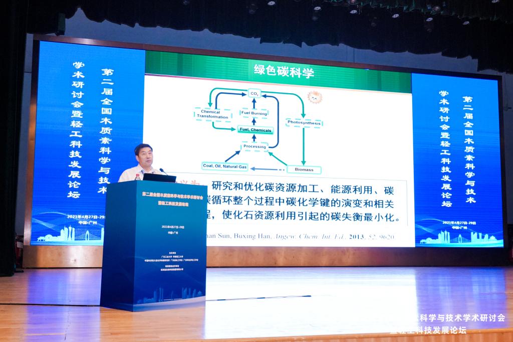 开幕式之后,张涛院士作题为“木质素催化转化:从氢解到自供氢解聚”的大会报告,正式开启了本次大会的学术交流环节。韩布兴院士、邱学青教授等进行了10余人次大会报告,70余人次分会报告,针对木质素基础化学、木质素基精细化工产品、木质素基功能材料、木质素降解、木质纤维素及其它生物质的开发和利用等五个分会场主题展开了广泛而深入的研讨交流。会议展现出两方面特色:一是研讨的领域进一步拓宽。从制备工业表面活性剂到制备平台化学品与高值燃料,从制备具有特殊性能的木质素基功能材料到能量存储与发电,专家学者们分享的报告覆盖了木质素科学与技术的多个研究前沿,涉及化工、化学、造纸、能源、材料、生物、环境等多个学科领域。二是研讨的主题进一步深入。本次会议中,与会专家学者围绕当前国家经济和社会建设亟需解决的卡脖子问题,聚焦木质素基础研究中的结构解析、改性利用、催化解聚、功能材料制备等主题,进行了热烈探讨。