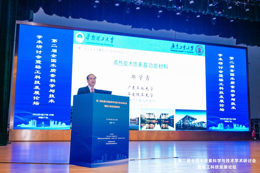 最后,邱学青为大会致闭幕辞,对与会代表、关心支持会议举办的有关单位和会议工作人员表示感谢,高度赞赏了本次会议交流的一系列创新而富有特色的成果。他指出,今年是中国加快实现碳排放达峰的元年,深入开展木质素生物质资源高值化利用方面的研究,有利于推进资源全面节约和循环利用,对于立健全绿色低碳循环发展的经济体系,建设美丽中国,具有重要意义。并就如何进一步加强木质素基础化学研究、木质素基精细化工产品和功能材料研究、凸显中国特色的木质素研究等方面谈了思考。希望继续面向经济主战场、面向国家重大需求和面向人民生命健康开展木质素研究,争取研究成果早日落地,为做出具有中国特色的木质素研究而不懈努力。