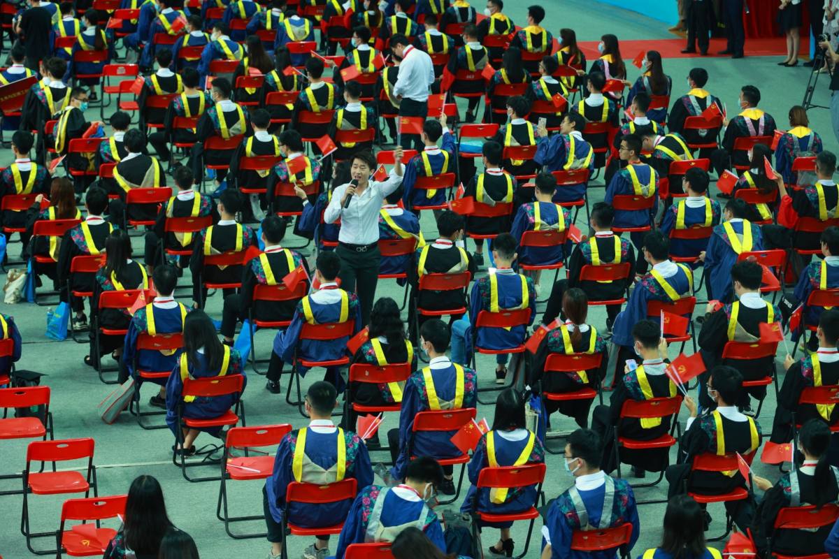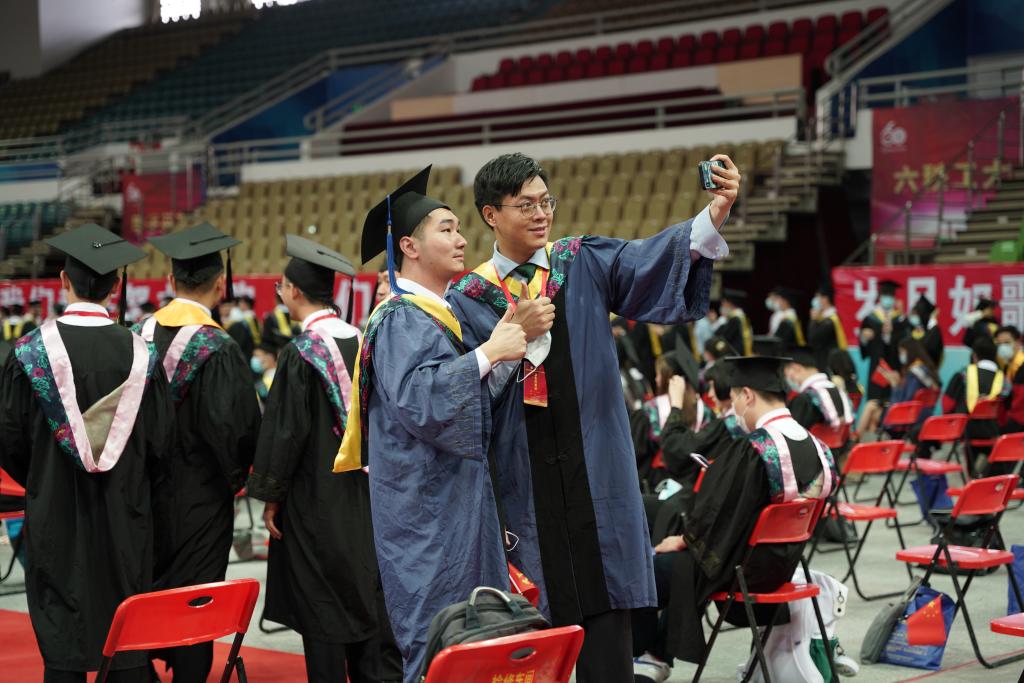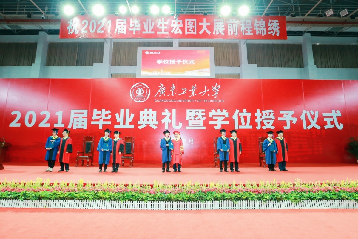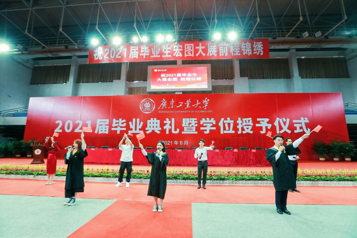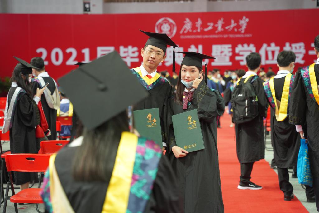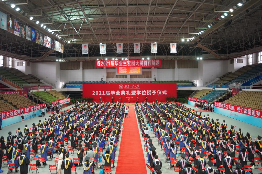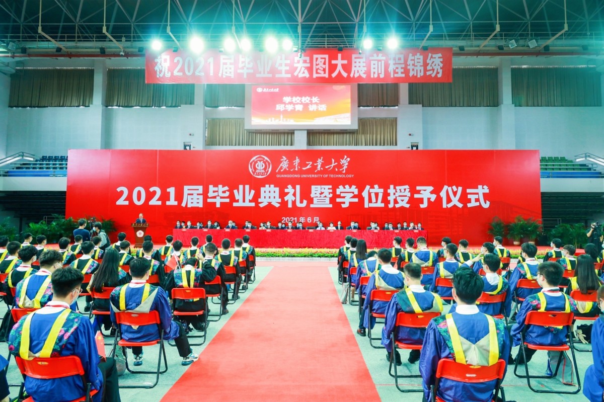 广工2021届毕业生共有10640人,其中本科生8363人、硕士研究生2221人、博士研究生56人。为做好疫情防控工作,毕业典礼以线上线下相结合的方式举行,教师代表、毕业生代表、各学院主要负责人代表、各学院党委副书记、毕业班辅导员代表等在现场观礼,其余师生、毕业生家长等在“云端”相聚,共同见证这一难忘时刻。