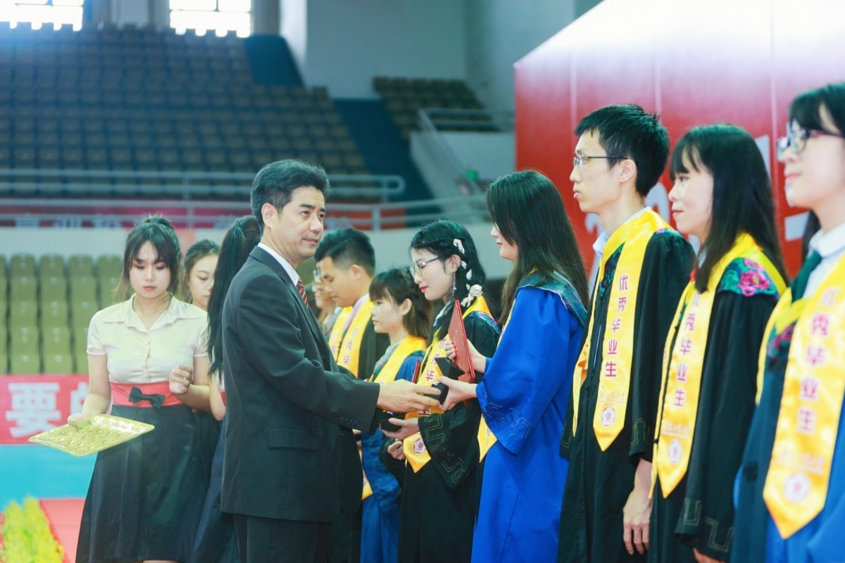 校党委书记胡钦太为优秀毕业生代表颁发荣誉证书