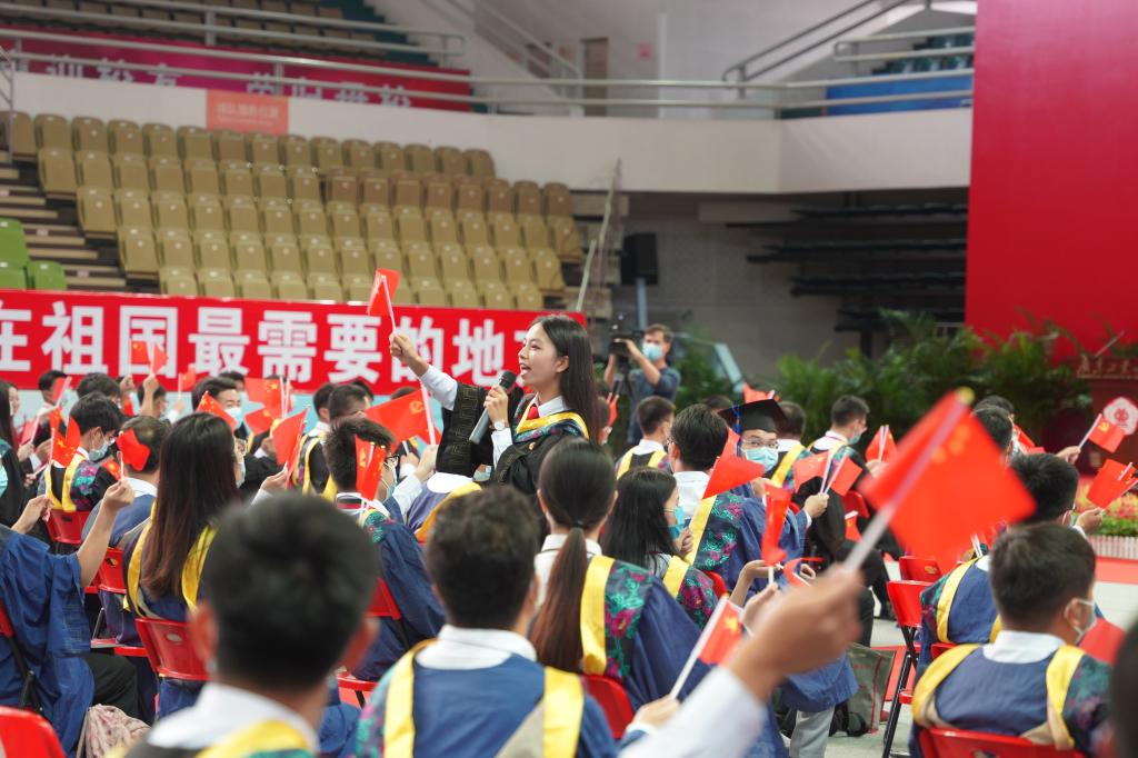 “再过两天就是中国共产党百年华诞,在‘两个一百年’历史交汇点,你们踏上人生新征程,这是人生之幸、时代之幸、国家之幸。”邱学青祝愿同学们展翅高飞,鹏程万里,勇做时代的攀登者!