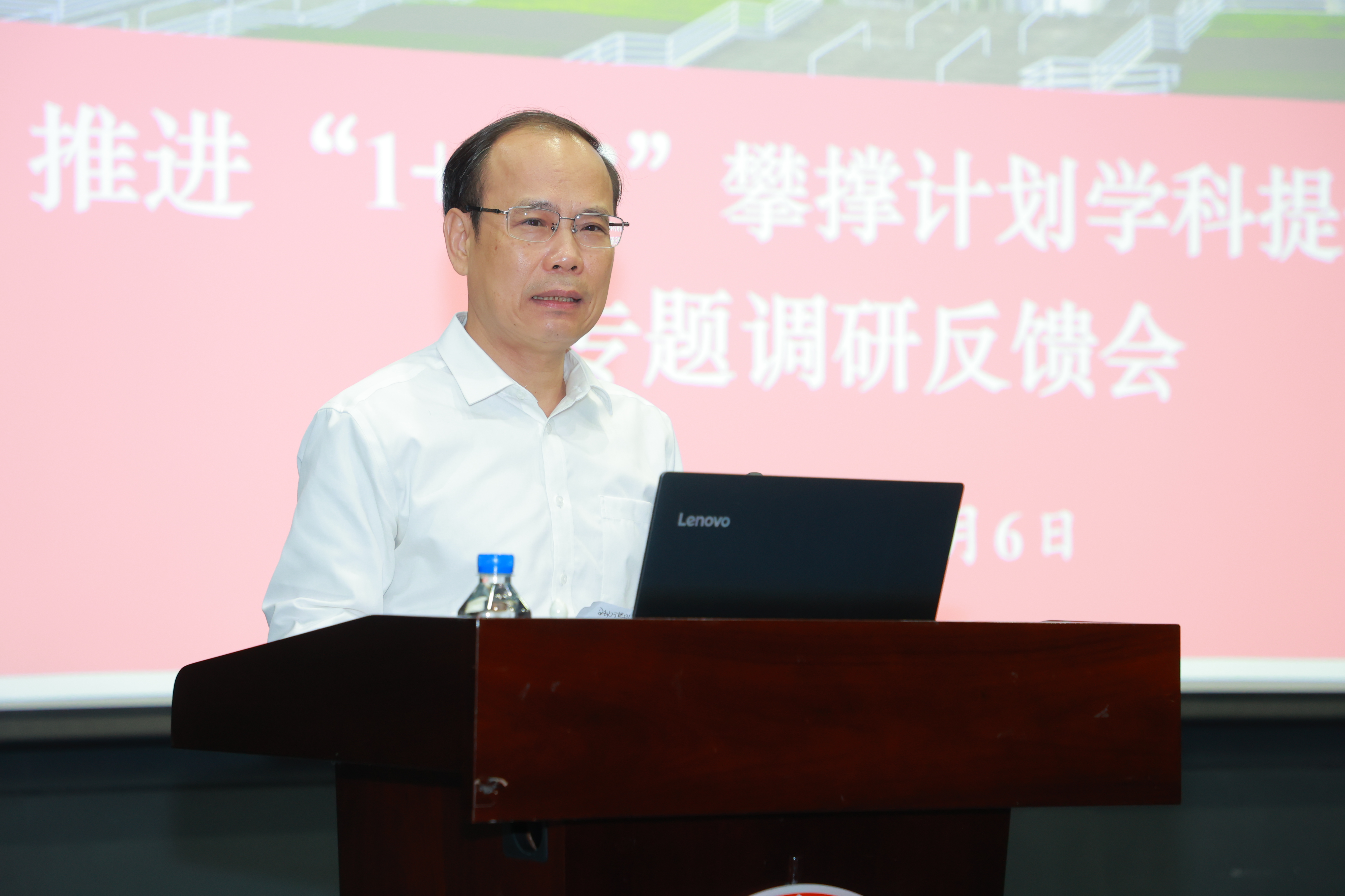 “学校“1+2+3”攀撑计划学科提升工程是牵动全校各方面工作的头号工程,是落实学校第五次党代会精神的主攻方向,是推动学校加快发展、迈上新高度的战略抓手。全校上下要凝心聚力,提速攀峰、强弱补短、改革创新、敢闯敢干,不断开创攀撑计划的新局面。”胡钦太在总结讲话中对本次调研反馈会给予了充分肯定,并站在党和学校事业的高度,提出了“四心四力”的要求:第一,要坚守初心,增强提速攀峰的动力。推进攀撑计划、建设高水平创新型大学的根本目的就是坚守教育初心不动摇,认真回答“为谁培养人、培养什么样的人,怎样培养人”“办什么样的大学、怎样办大学”这两个根本性问题,在过去快速高水平发展的基础上推动提速攀峰,建设更加卓越的高水平创新型大学。第二,要狠下决心,提振强弱补短的魄力。要认真贯彻习近平总书记关于“八项本领”与“七种能力”的重要论述,加强干部履职能力建设。要牢固树立教师是办学主体的思想意识,发挥广大教师的主人翁精神,教育引导他们用心用情用力为学校发展作出更大贡献。第三,要精于匠心,保持改革创新的定力。要建立改革创新的清单,找准改革创新的切入点、突破口,把握改革的系统性、整体性、协同性。要继续保持改革创新的战略定力,最大化凝聚改革共识,最优化形成改革配置,坚持“一个山头一个山头地攻,一个难关一个难关地破”,推动改革创新更好服务学科建设和学校发展大局。第四,要戮力同心,凝聚敢闯敢干的合力。胡钦太强调,实施攀撑计划,是关系学校高水平创新型大学建设的一项全局性、战略性任务,各单位、各部门必须高度重视、全力以赴。各二级单位领导班子要加强组织领导,为实施攀撑计划提供坚强保障,团结带领全体师生,勠力同心、共同奋斗,上下拧成一股绳、攥成一个拳,将涓滴之力汇成磅礴伟力。