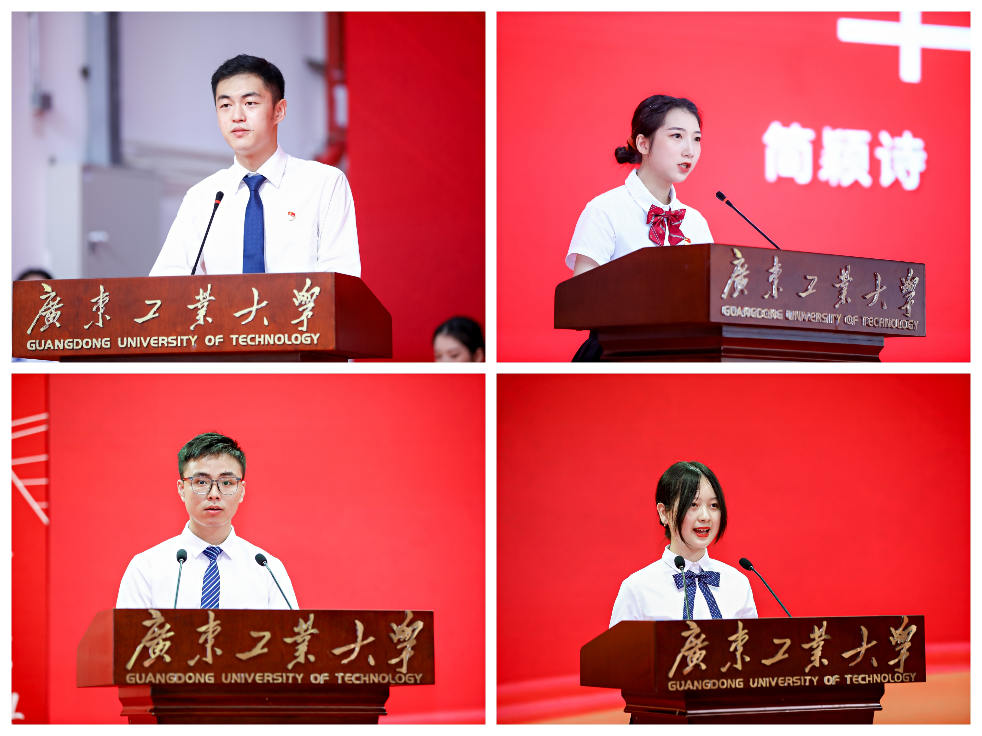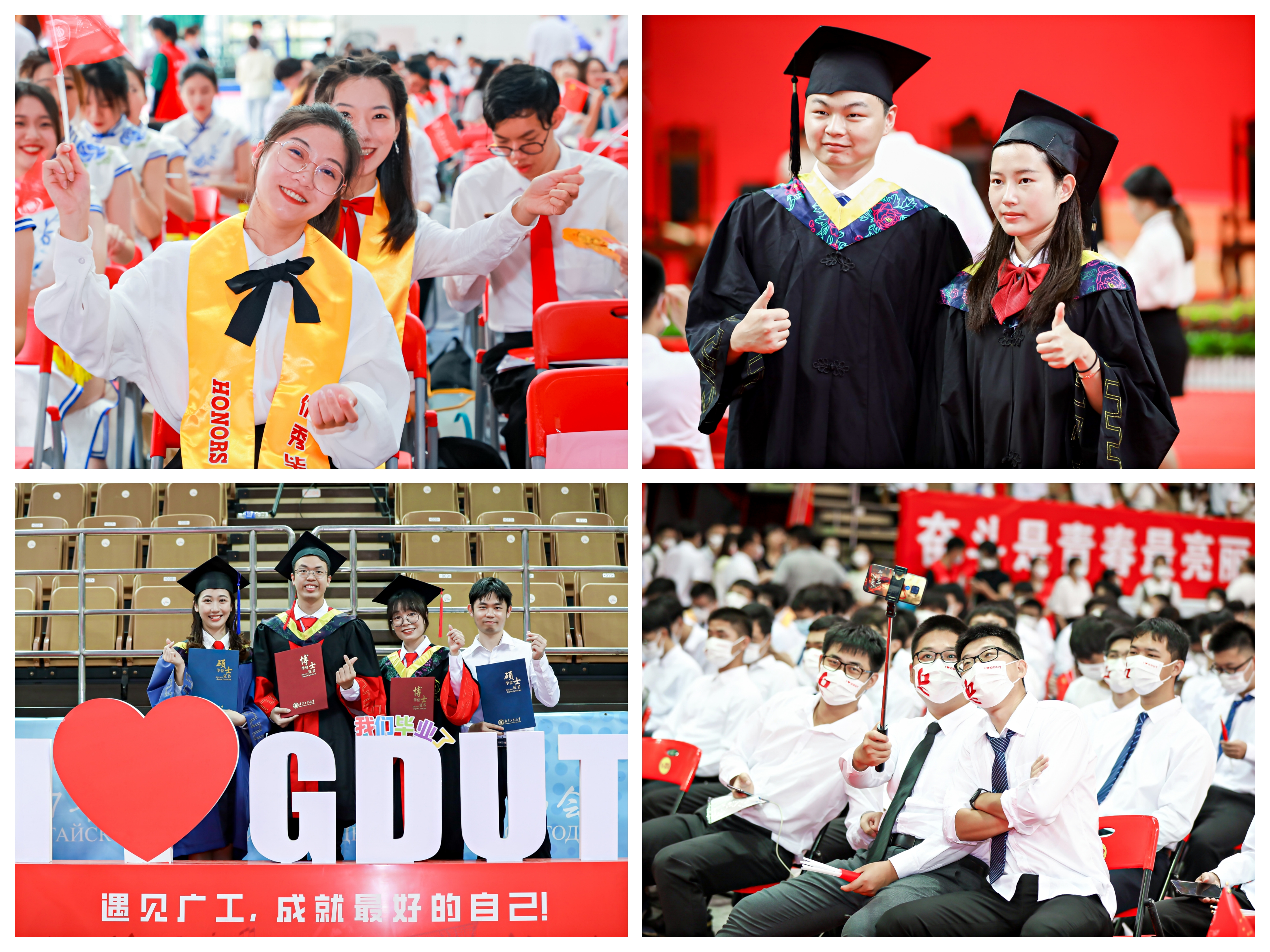 毕业生代表、法学院硕士毕业生曾阅重温了他在广工的7年时光。作为即将留校的辅导员,他祝愿广工学子:自信且不骄、真诚且正直、勤奋且上进。“此去一别若再见,愿我们依旧是矢志不渝的广工人。”毕业生代表、建筑与城市规划学院本科毕业生简颖诗,用“扎根”勾连其专业、学习与生活。因为“扎根”,她收获了无悔的大学生活。而今毕业,大家都将奔赴各行各业“扎根”。“我们每一个平凡的人的‘扎根’,必将汇聚成不凡的能量,我们的祖国必将开满绚丽之花。”毕业生代表、机电工程学院硕士毕业生韦胜强说:“我记得很多人陪我熬了夜,陪我掉了头发,陪我看了凌晨四点的广工。”三年来,他跟随导师走访了诸多企业,也日益坚定了自己选择工业制造的信念,“初心如磐,甘愿为中国电子制造的发展贡献自己的青春,哪怕是成为不起眼的垫脚石”。来自外国语学院翻译专业的本科毕业生杨丝淇作为毕业生代表发言,她回忆了数次参加英语演讲比赛的经历,感谢老师们的辛勤付出与学校的大力支持。“讲好中国故事,传播中国声音从来都不应是一句空话,需要你我在内的广大中国青年迎难而上的精神和身体力行的不懈奋斗。”