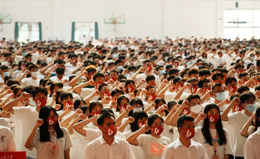 “我宣誓:坚定信念,牢记使命;热爱祖国,遵纪守法;爱校荣校,尊师重教;团结同学,诚信友善;勤奋学习,自立自强;求是探索,勇于担当;创新图强,不负韶华!”在领誓同学的带领下,全体新生举行了入学宣誓,铮铮誓言响彻云霄,这是对自己的期许,也是对未来的承诺。