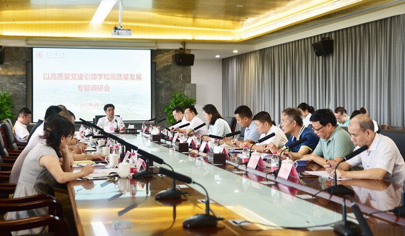 为充分发挥党建引领作用,进一步加快高水平创新型大学建设,以实际行动迎接党的二十大胜利召开,学习宣传贯彻党的二十大精神,连日来,校党委书记胡钦太率党委办公室、校长办公室、党委组织部、发展规划处、人事处等相关部处负责人,主持召开8场“以高质量党建引领学校高质量发展”专题调研会,集中听取各部门、单位师生代表的意见和建议,行程遍及大学城校区、东风路校区、龙洞校区和揭阳校区等各校区。党委副书记陈良友、朱蔚蔚,党委常委、副校长杜承铭、陈卓武、栾天罡,副校长余林等参加了相关场次的专题调研。