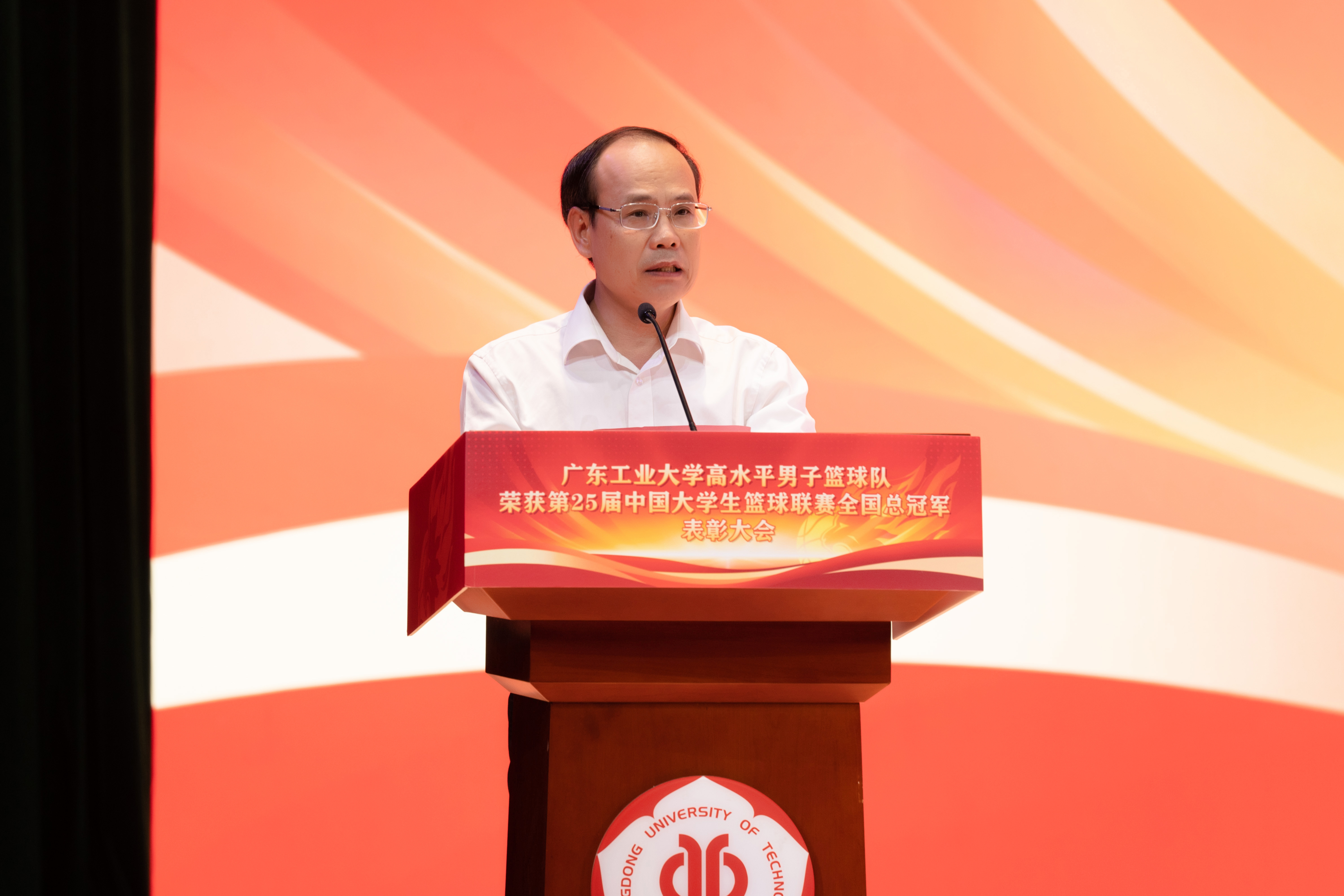 广东省委委员、学校党委书记胡钦太,校长、学校体育运动委员会主任邱学青,广东省教育厅二级巡视员邱克楠,广东省体育局党组成员、副局长林瑛,共青团广东省委副书记范春,广东省篮排中心书记、CBA广东队主教练、广东省青联副主席、广工校友杜锋,广东省篮球协会会长刘克军,学校党委副书记朱蔚蔚,校党委常委、副校长王成勇、栾天罡,副校长余林等领导嘉宾出席表彰大会。校党委副书记、学校体育运动委员会副主任陈卓武主持会议。