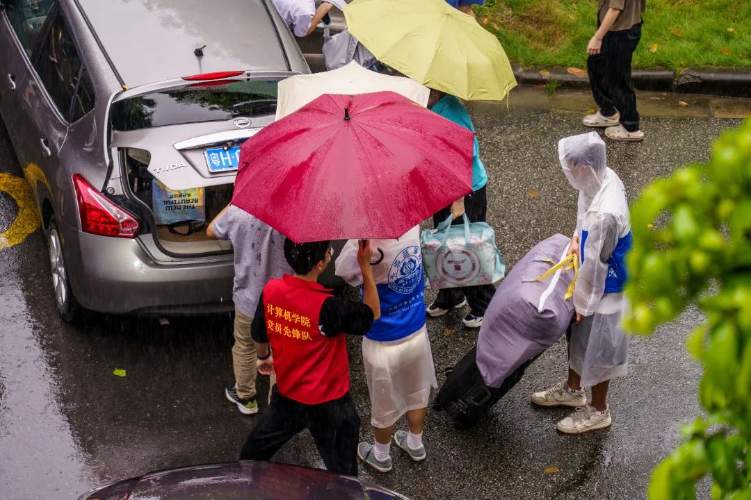 数学与统计学院新生杨家轩的家长表示,“志愿者师生都很热情,即使是大雨天也丝毫不懈怠,整个报到的过程感觉井然有序,让本来手足无措的我们多了一份安心。”