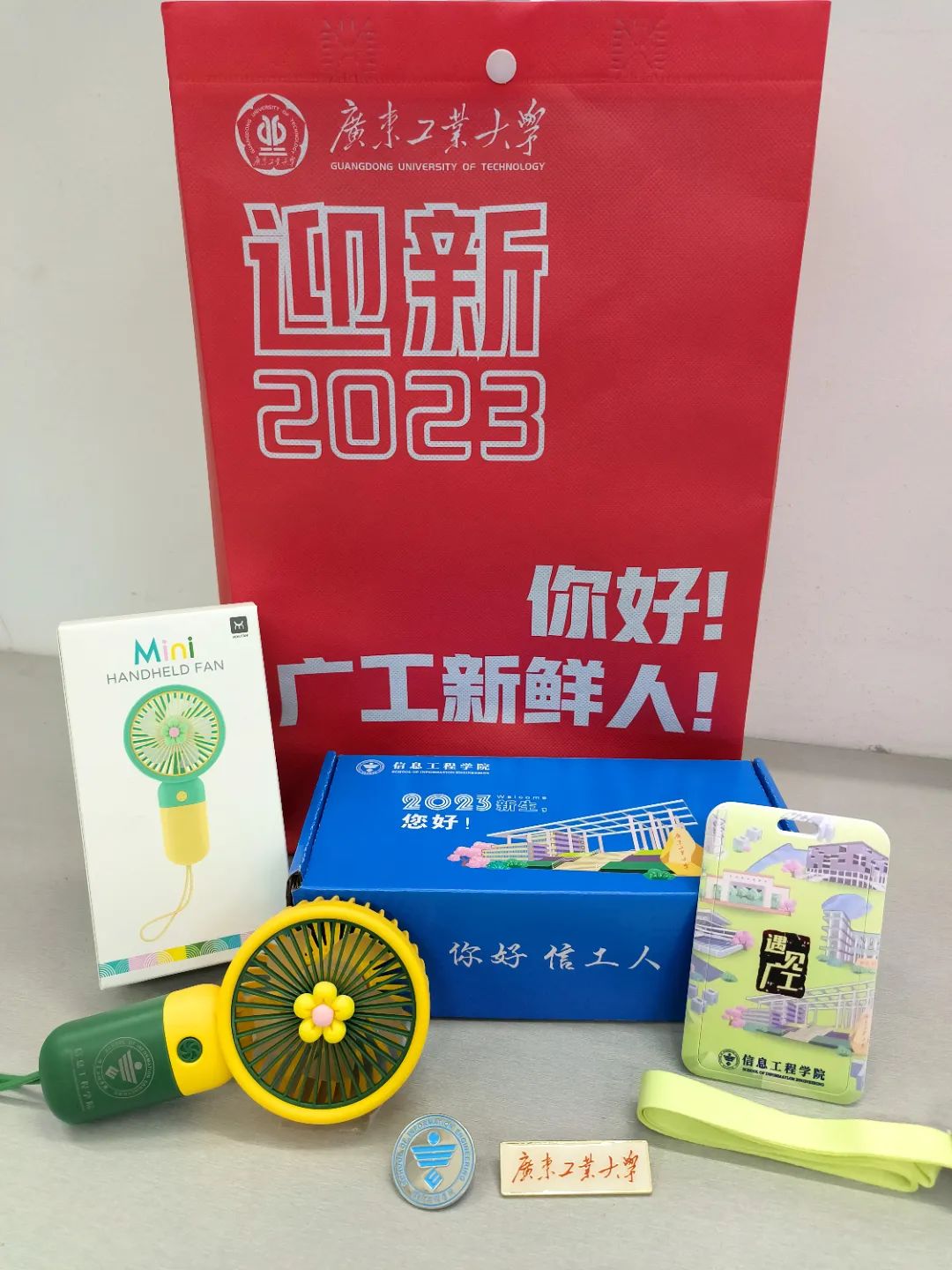 计算机学院为新生们精心准备了专属帆布袋、学生手册、防诈指南、心理贴士、雨衣等迎新包。值得一提的是,帆布袋是学院结合学校庆祝本科办学65周年,以校训“团结 勤奋 求是 创新”为主题精心设计的四种款式,寓意IT萌新能秉承校训精神,在广工谱写新时代的青春之歌。