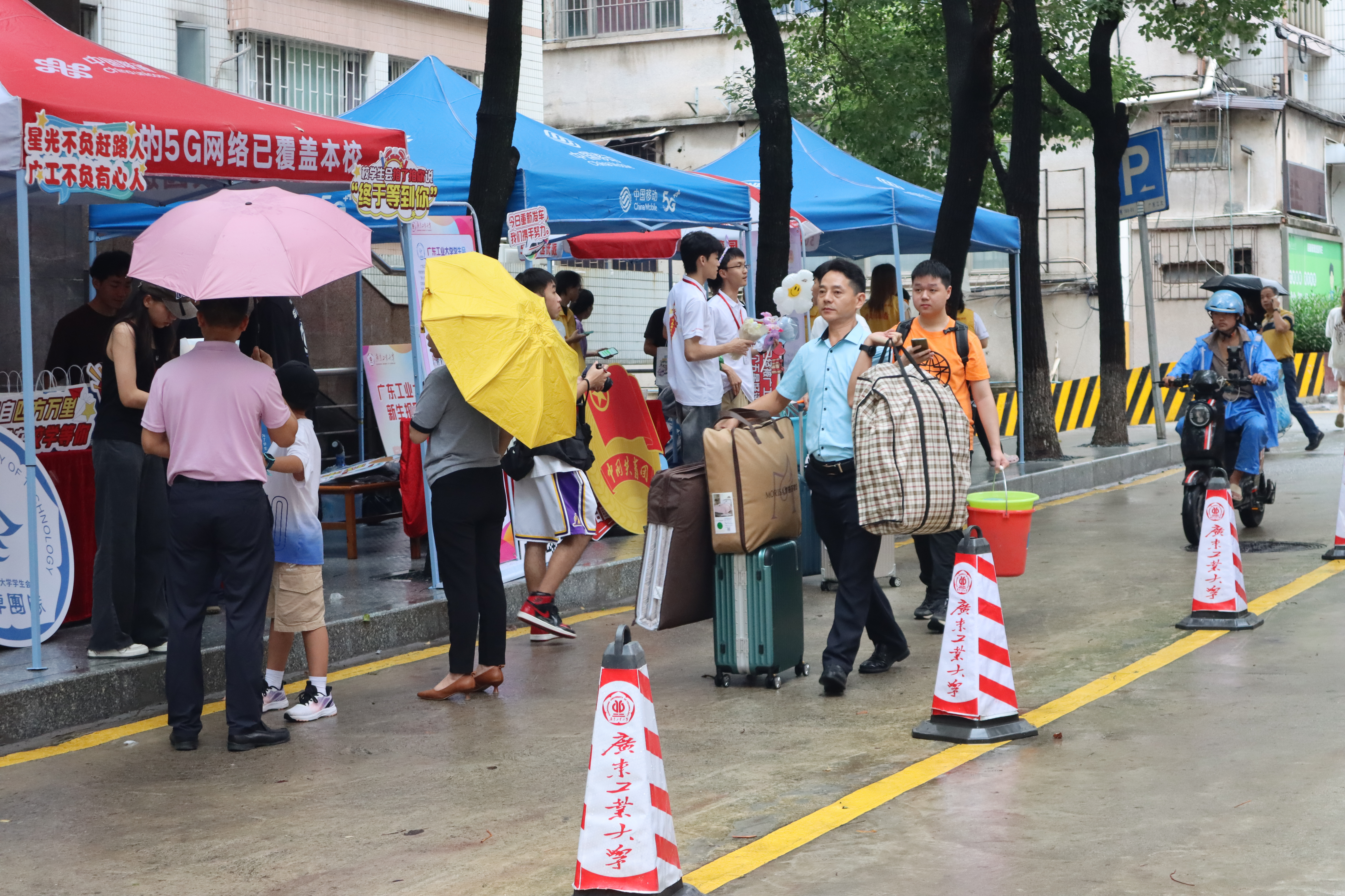 “希望能够帮助学弟学妹们尽早适应大学生活,更好地融入广工大家庭。”来自法学院的志愿者吴颖姗表示,尽管雨天给迎新带来了很多挑战,但在大家的共同努力下,迎新活动有序进行。“这是我第一次担任迎新使者,”土木与交通工程学院迎新使者蒋经纬说,“帮助新生顺利入学是一件很有意义的事,感觉好像看见了曾经的自己。”