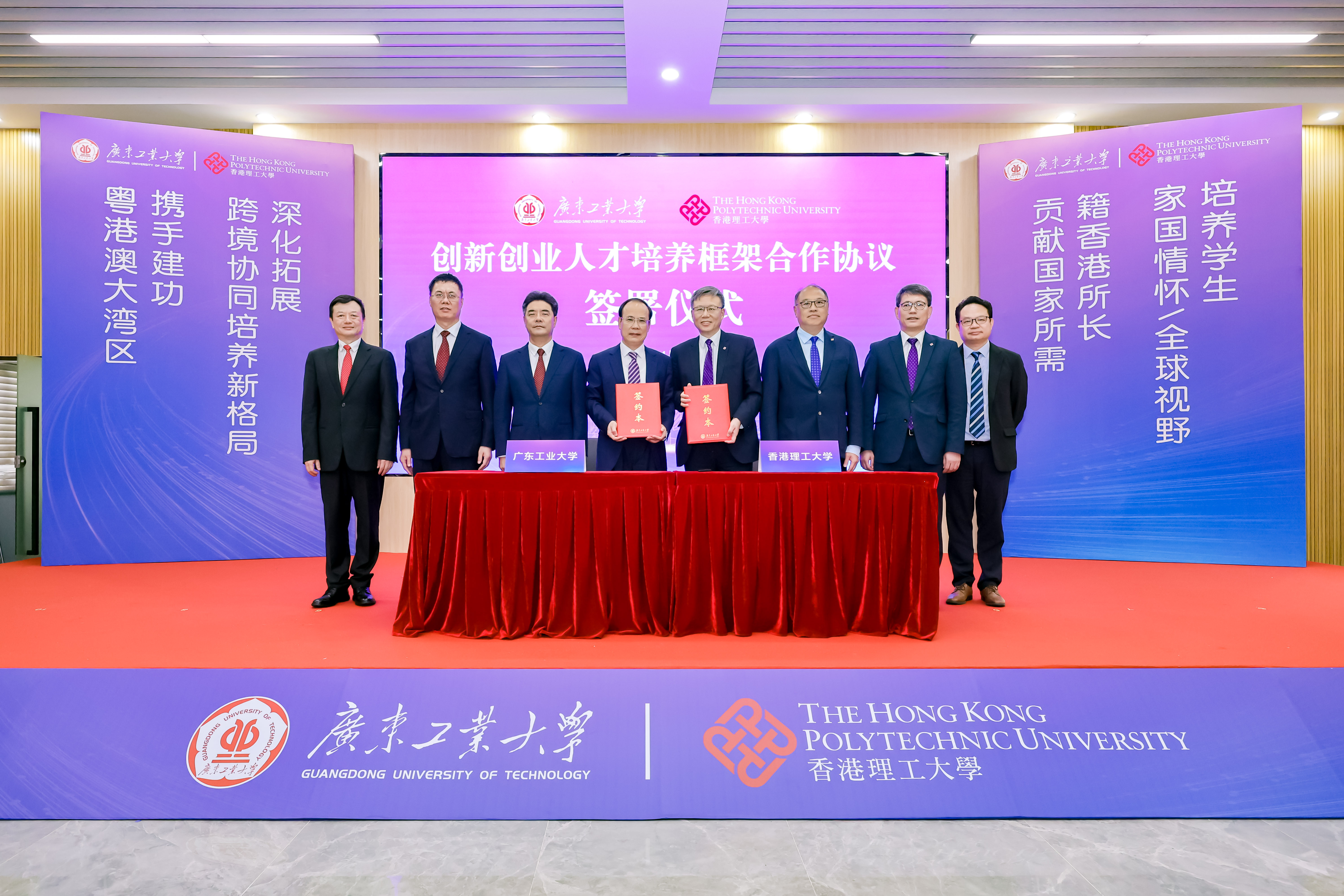 4月28日上午,华体会·官方版网站登录入口与香港理工大学在广工大学城校区国家级创新创业教育实践基地-工大创谷共同签署了创新创业人才培养框架合作协议,正式启动粤港澳大湾区沉浸式体验项目,两校以“学分制”形式共同打造高质量粤港澳大湾区创新创业人才培养“生态圈”。
