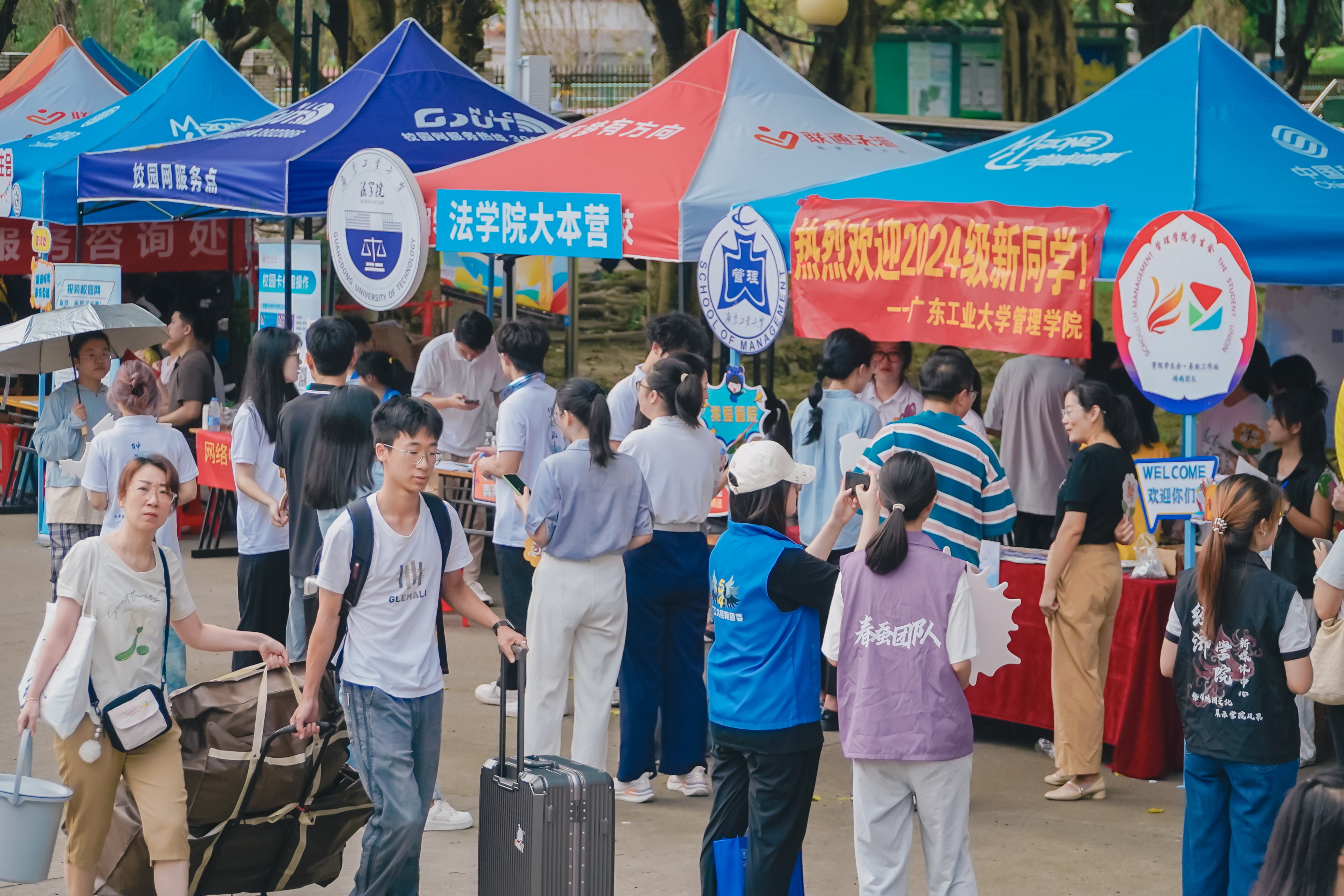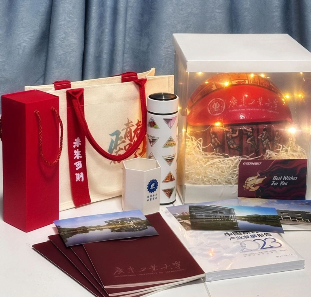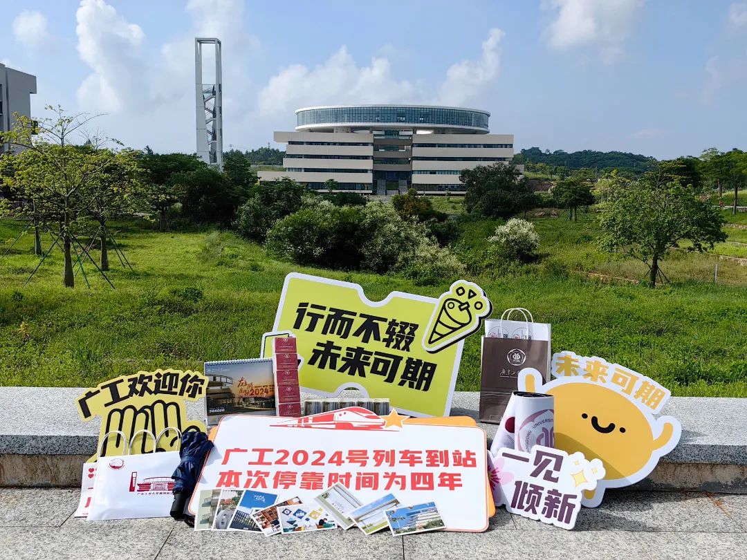 揭阳校区设计了新生签名墙和打卡点,还准备了专属扇子、明信片、日历、鼠标垫等小礼物;材料与能源学院精心准备了新生慰问礼包,为当天生日的同学定制蛋糕,赠予新生特制笔筒;计算机学院准备了新生专属礼包袋以及计算机专属卡套等,用所有新生名字设计了“我爱计算机”迎新展板;自动化学院、轻工化工学院、法学院、信息工程学院、物理与光电工程学院等为新生赠送定制钥匙扣、帆布袋、明信片、特色地标卡片、广工生活指南等;国际教育学院编写个性化双语入学祝福;集成电路学院举办了新生趣味定向越野活动;土木与交通工程学院以“增加专业归属感”为主线为新生配备“引路人”校友班主任等等,点滴心意暖人心。