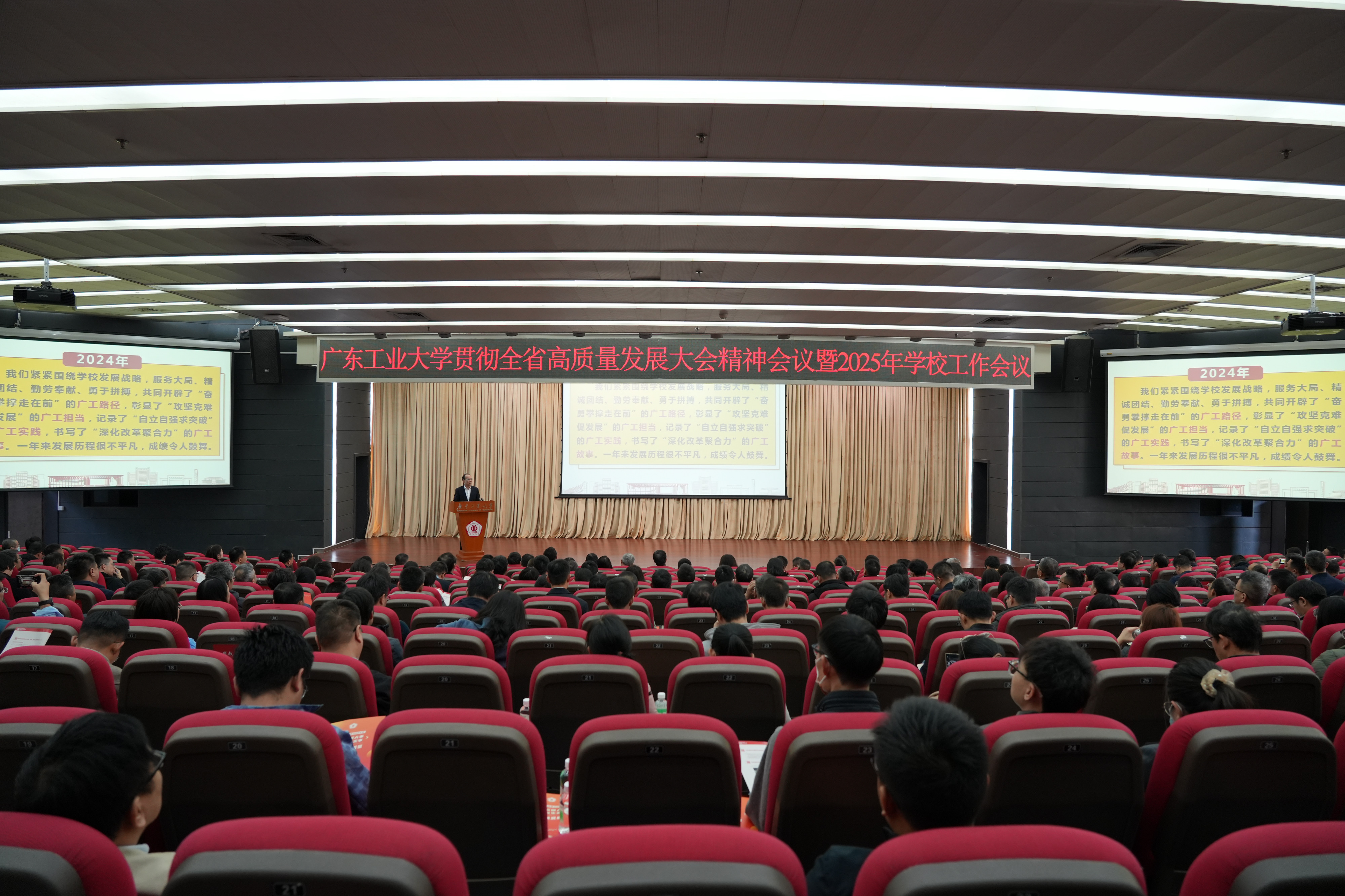 2月24日开学第一天,广工在大学城校区大讲堂中心报告厅召开贯彻全省高质量发展大会精神会议暨2025年学校工作会议,认真学习贯彻党的二十大和二十届二中、三中全会精神,贯彻落实全国教育大会、全省高质量发展大会和全省教育大会精神,总结工作、分析形势、部署任务,共同擘画广工“攀高峰”“冲一流”的美好蓝图。学校党委副书记、校长邱学青号召全体广工人以“再踏层峰辟新天,更扬云帆立潮头”的信心和决心,抢抓机遇、守正创新、久久为功,推动学校高水平创新型大学建设实现新跨越。