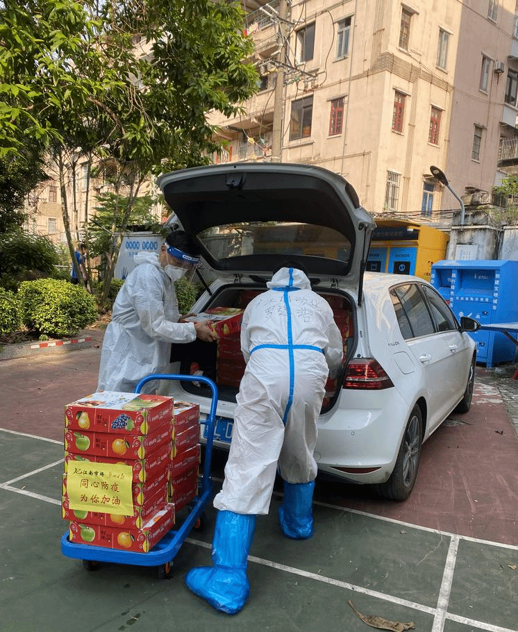 为社区老人运送水果