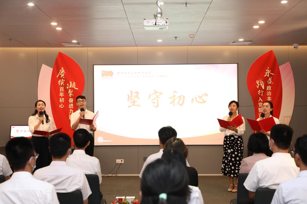 过“政治生日”,是为了追忆初心,更是为了坚守初心。“那年‘七一’,我举起右手,对您宣誓,为共产主义奋斗终身,从此,我就是您的儿女。”在“坚守初心”篇章中,张丽平、王颖、靳挺宇、方舒四位党员同志用一首诗朗诵《我宣誓》歌颂了党的百年辉煌,表达了对党深厚真挚的感情。