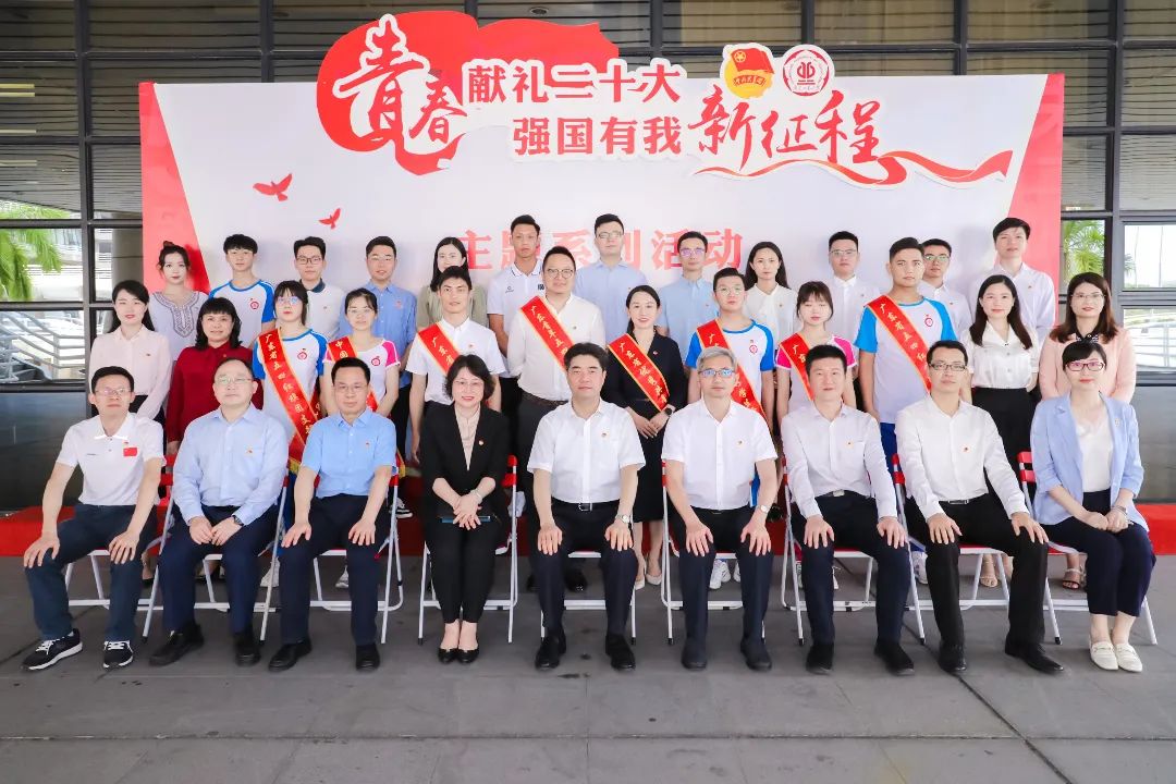 为迎接党的二十大胜利召开,庆祝中国共产主义青年团成立100周年,引领广大团员青年继承和发扬五四精神,5月5日上午,学校在大学城校区组织开展“青春献礼二十大,强国有我新征程”主题活动。学校党委书记胡钦太,党委常委、副校长陈卓武,党委常委、组织部部长李靖茂,党委常委、宣传部部长张育广,党委办公室、校长办公室,党委学生工作部,校团委,研究生院,体育部等部门主要负责人出席活动。各学院团委书记,中国大学生自强之星,广东青年五四奖章(提名奖)、“两红两优”荣誉称号获得者,学校“十佳百优”荣誉称号获得者等参加活动。