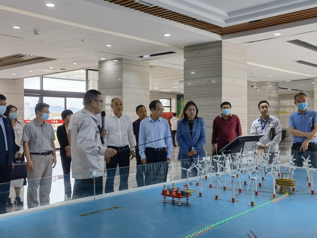 座谈前,邱学青在揭阳前詹风电有限公司负责人陪同下,参观了企业展厅和陆上集控中心,实地了解国家电投揭阳前詹风电有限公司的管理运行情况。