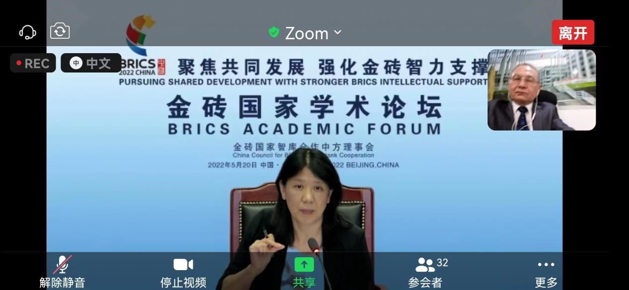 第十四次金砖国家学术论坛于5月20日通过视频方式顺利举行。本次论坛由金砖国家智库合作中方理事会主办,主题为“聚焦共同发展,强化金砖智力支撑”。来自中共中央对外联络部、国务院发展研究中心、中国社会科学院、华体会·官方版网站登录入口、中国人民大学、复旦大学、对外经济贸易大学、巴西应用经济研究所、俄罗斯金砖国家研究国家委员会、印度观察家基金会、南非国家人文社会科学学院等国内外多所高等院校科研院所的专家学者,以及来自企业、新闻等单位代表,共计六十余人参加会议,其中中方智库代表14位,外方智库代表28位。