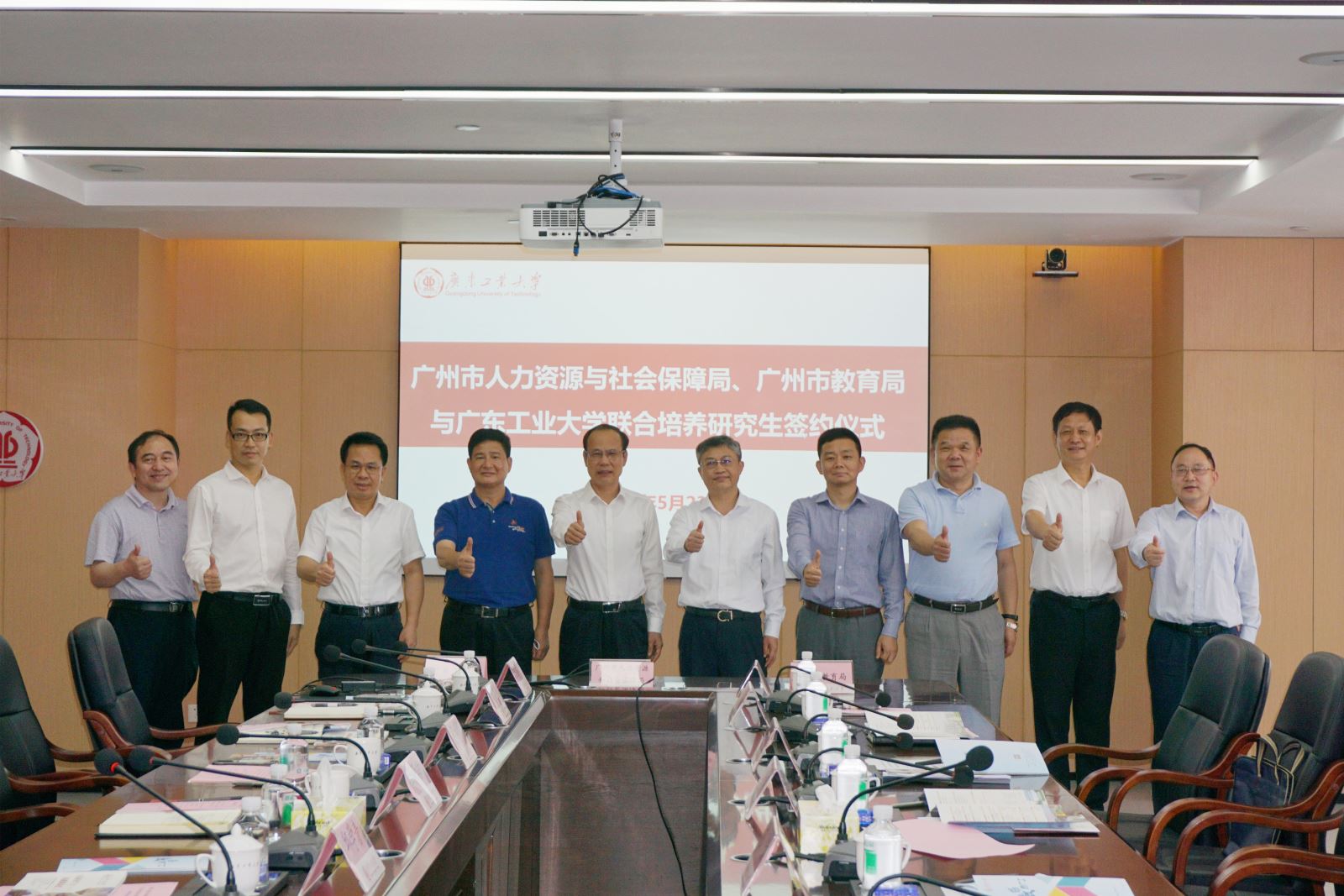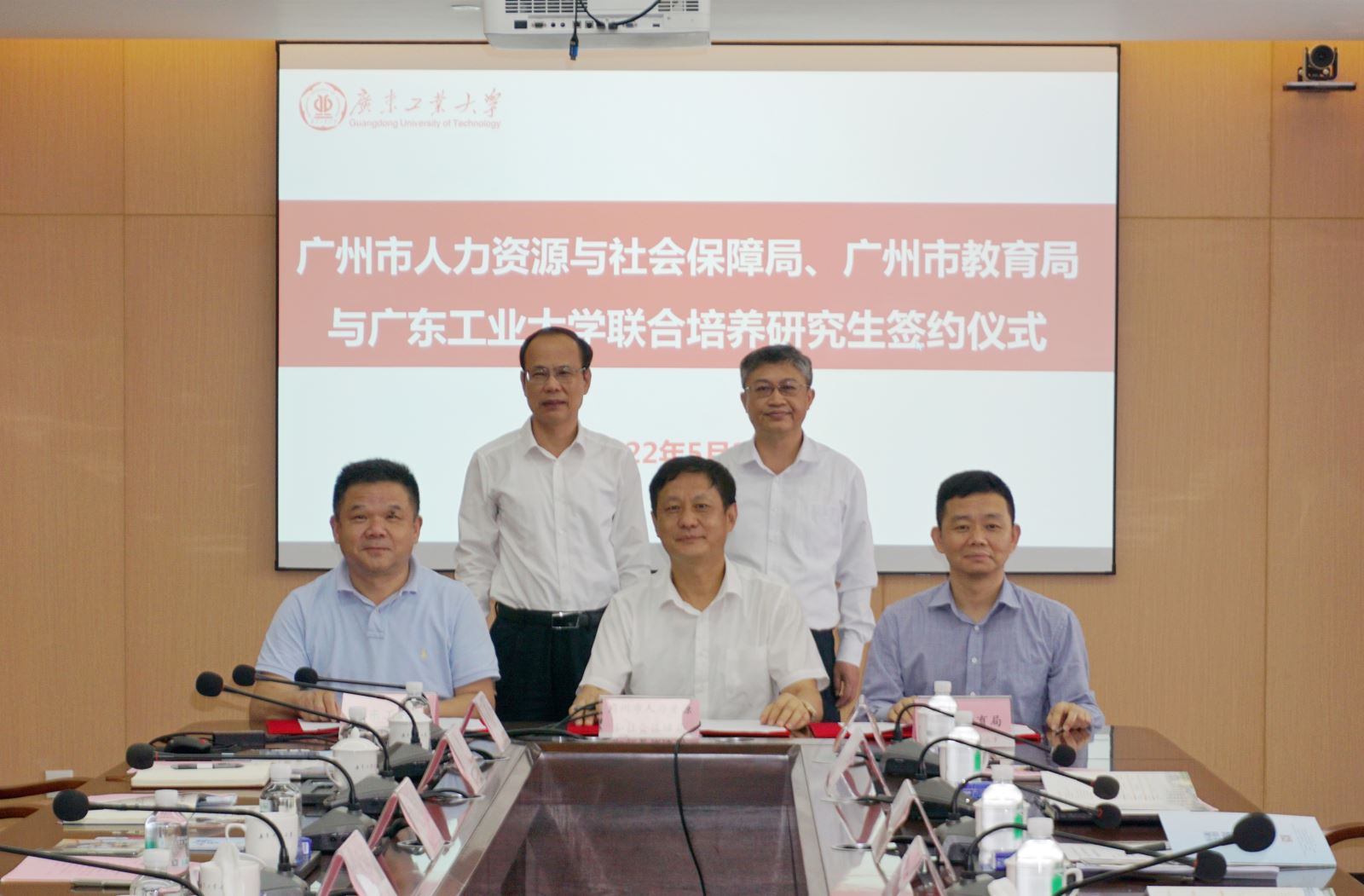 5月23日下午,广州市人力资源和社会保障局、广州市教育局与华体会·官方版网站登录入口联合培养研究生签约仪式在大学城校区行政楼702会议室举行。广州市人力资源和社会保障局党组书记、局长王健,副局长何士林,一级调研员张胜年,广州市教育局一级调研员林平,学校党委副书记、校长邱学青,广州市人力资源和社会保障局、广州市教育局有关职能部门负责人,学校党委办公室、校长办公室、研究生院、党委研究生工作部、人事处等相关部门主要负责人出席。签约仪式由学校党委常委、副校长杜承铭主持。