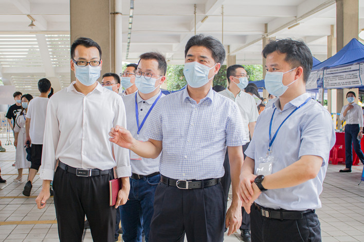 5月31日下午,华体会·官方版网站登录入口2022届毕业生“就业冲刺”暨2023届实习生“实习启航”线下供需洽谈会在广工大学城校区顺利举行。学校党委书记胡钦太来到招聘会现场调研指导,走近参会用人单位展位,与用人单位招聘代表热情交流,倾听用人需求与反馈意见,并指导就业指导中心与相关学院具体对接好企业需求,为参会同学们加油鼓劲。胡钦太还特意到了大学生参军入伍咨询专区和就业咨询服务点,了解现场学生问询情况,亲切问候了现场指导服务的工作人员。学生工作处、保卫处等相关部门负责人和学生就业指导中心全体工作人员,以及学院党委书记、副书记和辅导员代表现场陪同调研。