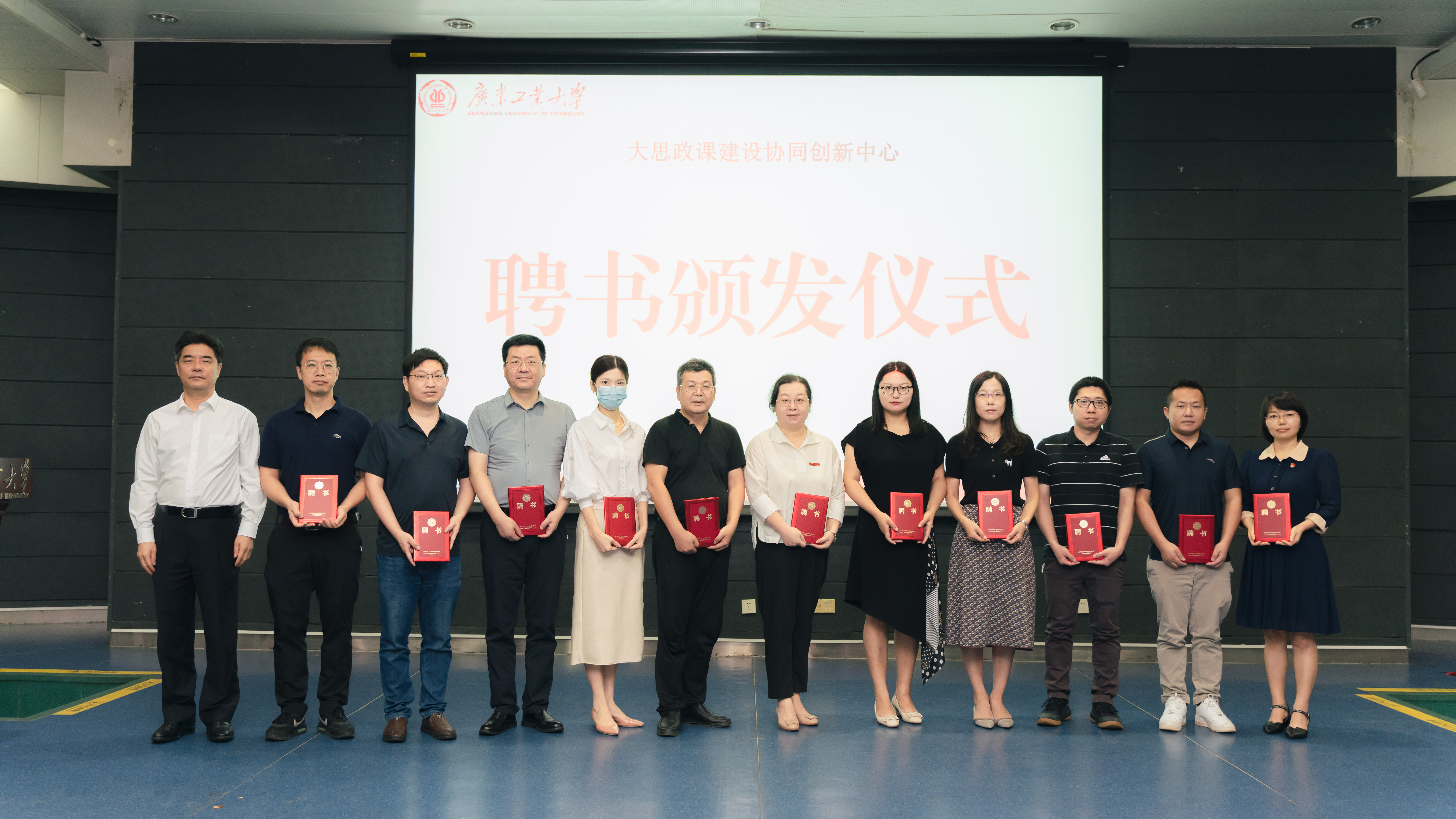 揭牌仪式上,胡钦太,栾天罡,教育部高层次人才特聘教授、华南师范大学马克思主义学院院长陈金龙,广东外语外贸大学马克思主义学院院长谢迪斌,南方医科大学马克思主义学院院长任映红,广东药科大学马克思主义学院院长刘小龙,马克思主义学院党委书记郑鹏、院长揭晓共同为创新中心揭牌。胡钦太为陈金龙教授和大思政课建设协同创新中心第一批中心成员代表颁发聘书,聘请陈金龙教授为中心顾问。