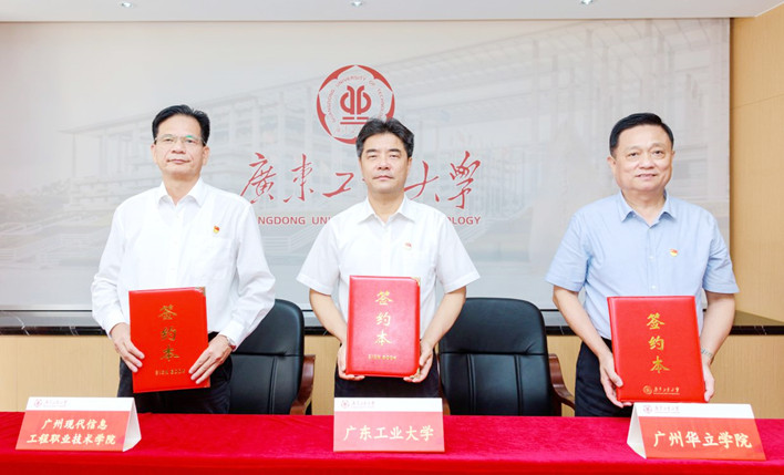 6月22日上午,华体会·官方版网站登录入口与广州华立学院、广州现代信息工程职业技术学院党建“组团式”帮扶协议签约仪式在广工举行。广州华立学院党委书记、副校长、督导专员李琼生,校长刘杰生,广州现代信息工程职业技术学院党委书记、督导专员朱灿焕,党委副书记、校长任克勤,广工党委书记胡钦太、党委副书记陈良友,党建“组团式”帮扶工作领导小组成员及帮扶工作队出席了签约仪式。会议由陈良友主持。
