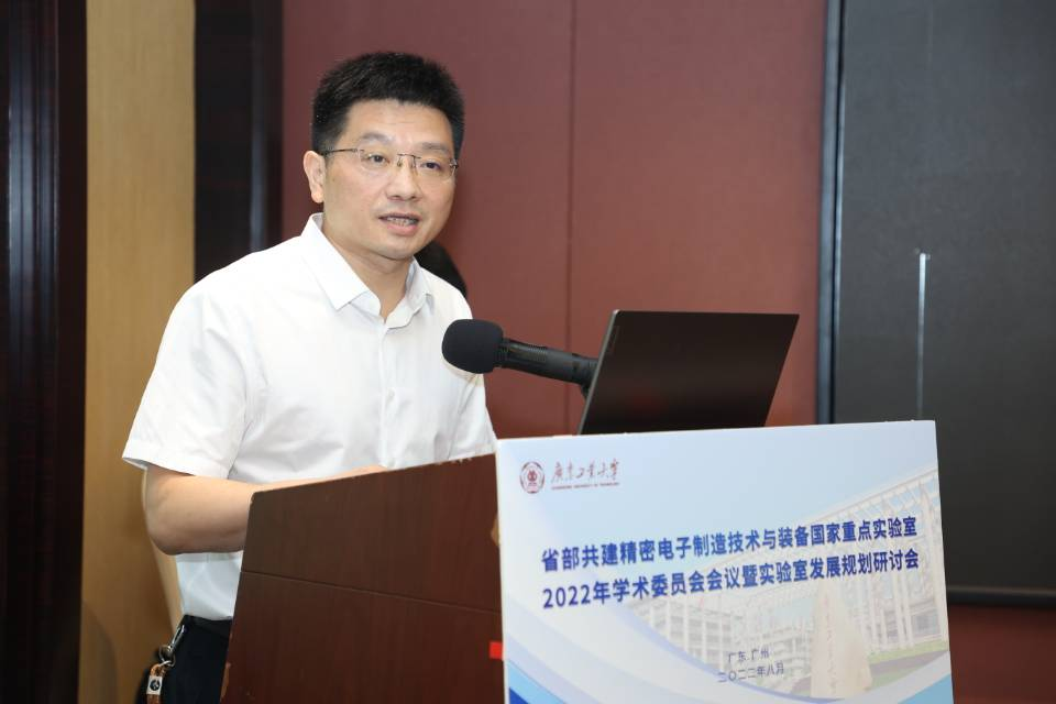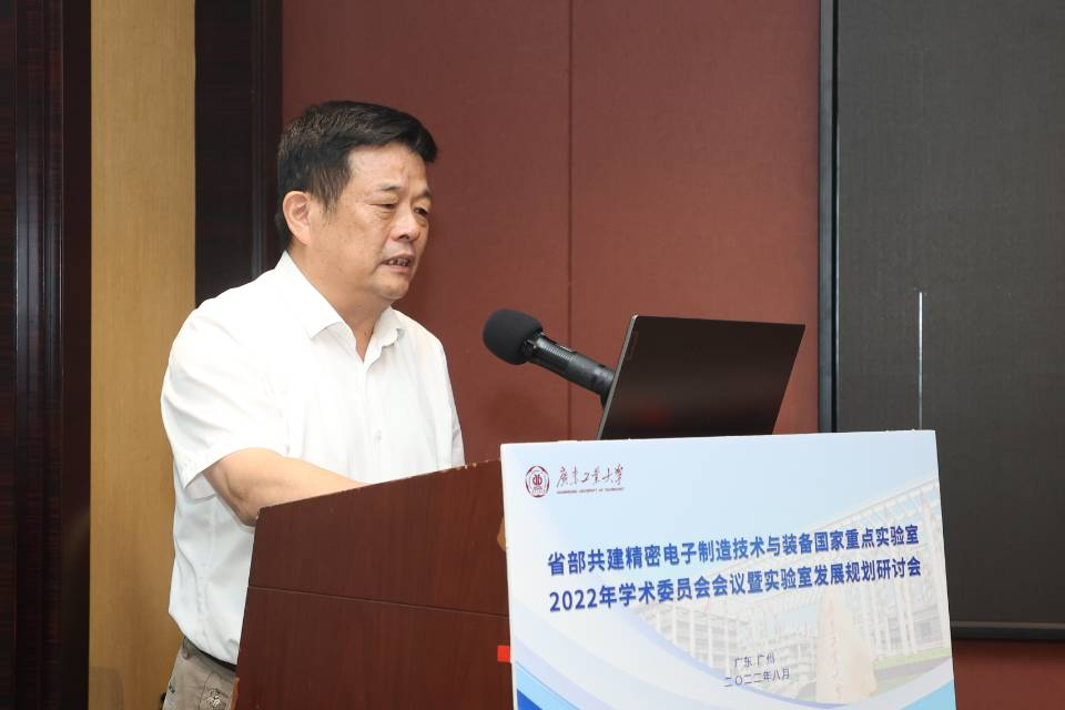 8月14日,华体会·官方版网站登录入口省部共建精密电子制造技术与装备国家重点实验室(以下简称“国重实验室”)2022年学术委员会暨实验室发展规划研讨会在广州召开,会议采用线上线下相结合的形式进行。国重实验室学术委员会主任、华中科技大学校长尤政院士,实验室副主任、长春光机所原所长王立军院士等全体学术委员会成员,特邀专家中南大学钟掘院士、浙江大学谭建荣院士、清华大学雒建斌院士、南京航空航天大学校长单忠德院士等一批知名专家学者,还有大族激光、华为海思、广州新粤能、兴森快捷、苏州迈为等一批知名电子制造企业技术专家参加了会议。广东省科技厅实验室与平台基地处处长黄江康、学校副校长王成勇出席会议并致辞。会议由国重实验室主任陈新教授主持。