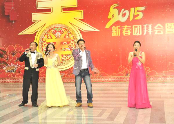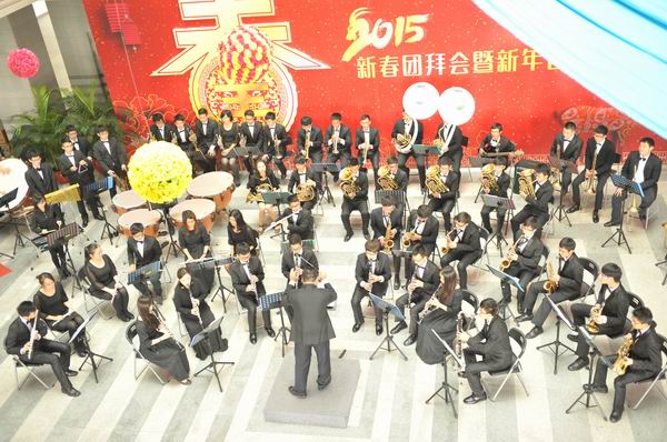 本网讯1月26日,学校在大学城校园举行2015年新春团拜会暨新年音乐会。校党委书记苏一凡、校长陈新等学校全体党政领导班子成员参加团拜活动,与师生员工共迎2015年新春的到来。