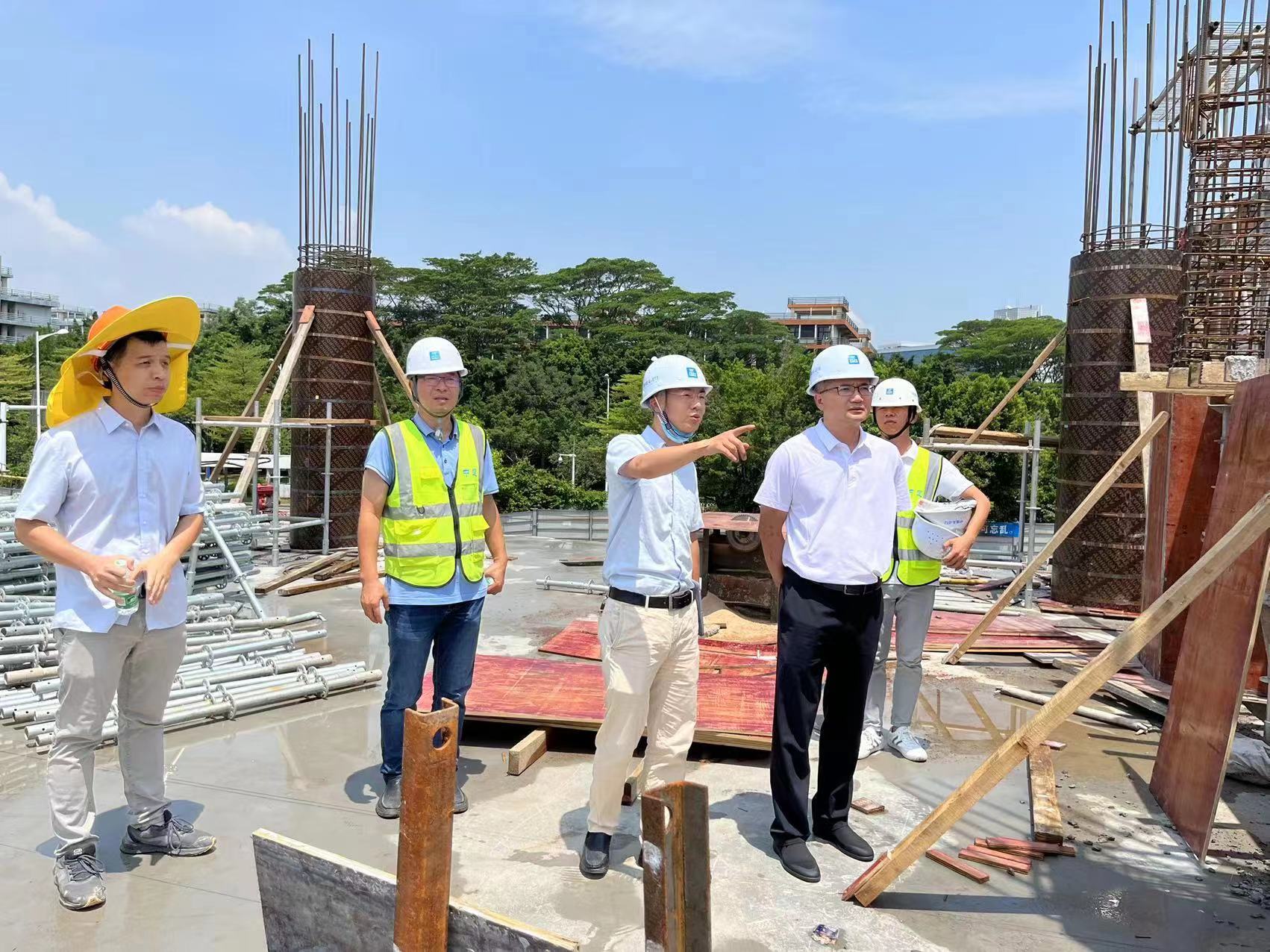 8月24日中午,学校党委常委、副校长陈卓武到大学城校区校史馆和科创实训楼(A栋)项目工地现场检查施工安全生产工作。陈卓武在工地现场与基建处、监理单位、施工单位的项目管理人员深入交谈,了解项目施工进展、质量和安全生产措施落实情况。陈卓武叮嘱各参建方管理人员,师生即将返校,人员流动大,加上即将有台风登陆,项目现场应加强安全管理,消除安全隐患并做好疫情防控工作。