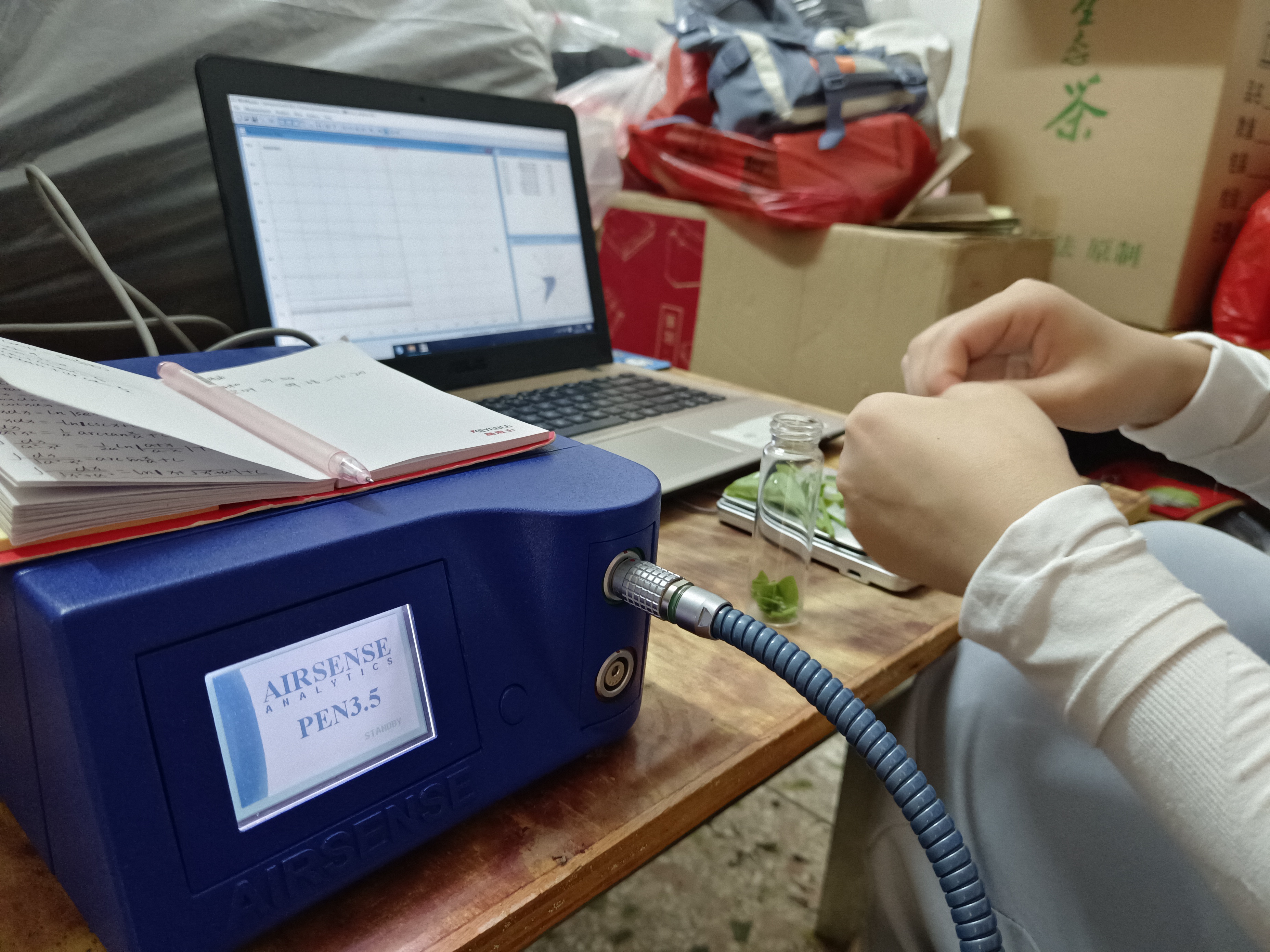 实践队队员通过电子鼻表证茶叶香气