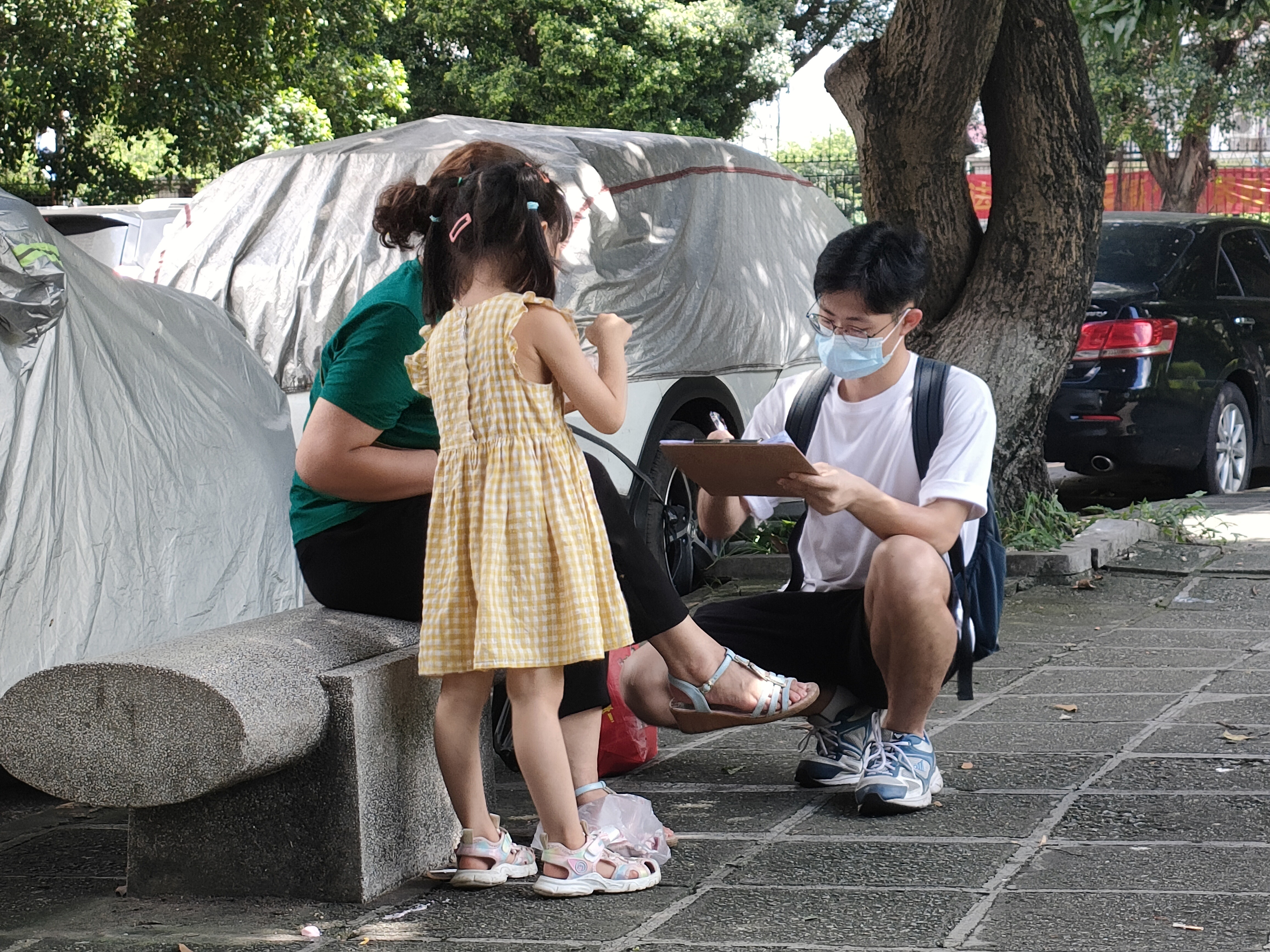 与此同时,邓非凡也正在忙碌着。烈日当头,他和团队小伙伴在广州的街道分发问卷和传单,为大众科普“碳减排、碳中和、碳达峰”的理念。