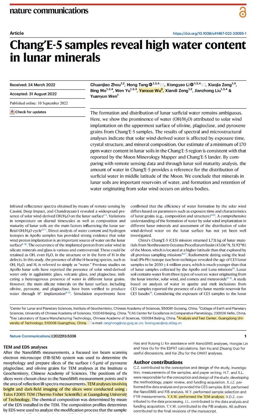 华体会·官方版网站登录入口作为合作研究单位,深度参与到了嫦娥五号月壤样品的测试分析。本成果中FIB切片透射形貌、成分、高分辨结构测试及相关数据分析,由分析测试中心吴焱学老师支撑完成。在学校大力支持下,中心的测试服务质量和水平得到很大提升,逐渐具备了服务学校科研和人才培养,服务国家重大需求和项目的能力,未来中心将尽其所能支撑学校发展。