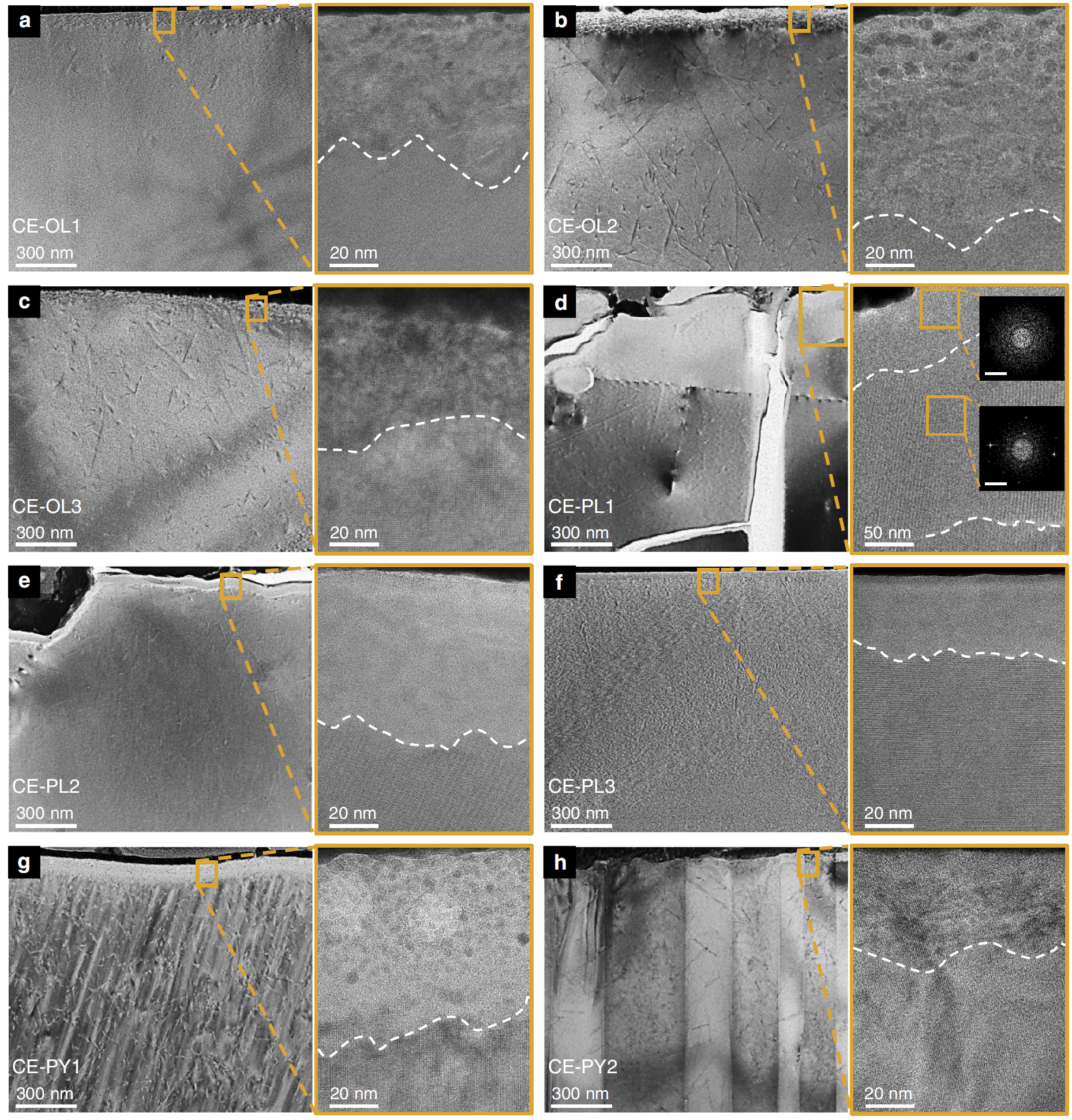 Δ嫦娥五号矿物表层显微结构的TEM图
