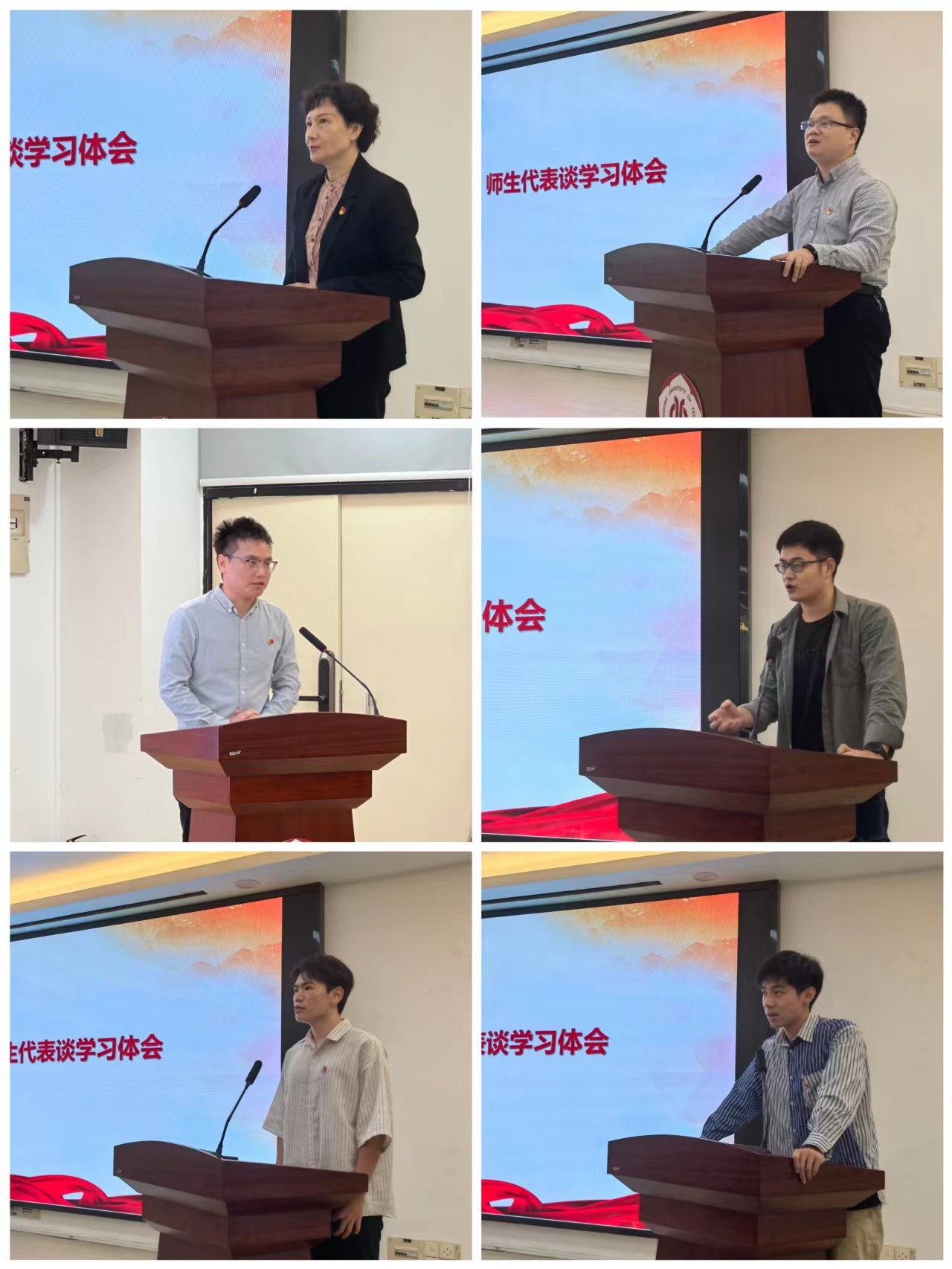 辅导报告后,师生党员踊跃发言,从如何理解“中国式现代化”、对“忠于信仰、立德树人”的理解和认识、如何将个人科研与国家命运相融合等方面分享了个人学习体会。