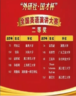 “外研社·国才杯”全国英语演讲、写作、阅读大赛是由外语教学与研究出版社和中国外语与教育研究中心联合主办、北京外研在线数字科技有限公司和中国外语测评中心协办的大型公益赛事。凭借其权威性、学术性和专业性,大赛自 2018 年起连续五年入选教育部中国高等教育学会发布的“全国普通高校大学生竞赛排行榜”,并被包括广东省在内的多地教育主管部门纳入省厅级比赛项目。大赛在引领理念、培养人才、推动教学等方面的成果备受认可。期待未来更多的同学积极参加外研社比赛,在演讲舞台上展示自己的光彩!