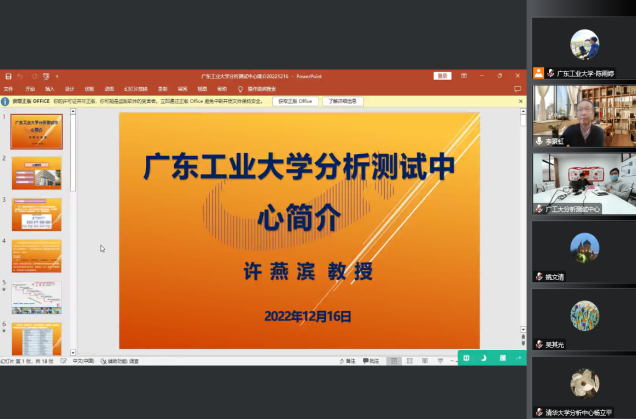 双方主任分别介绍了国家能谱中心和广工分析测试中心的建设情况。据悉,“国家大型科学仪器中心-北京电子能谱中心”是2005年由科技部、教育部、北京市科委联合规划投资建设科技部认定的国家级平台中心,依托清华大学分析中心,以发放学研究和分析仪器研制为导向,着重以服务国家科技前沿及国家重大需求为目标,推进表面科学研究和表面分析技术的发展。