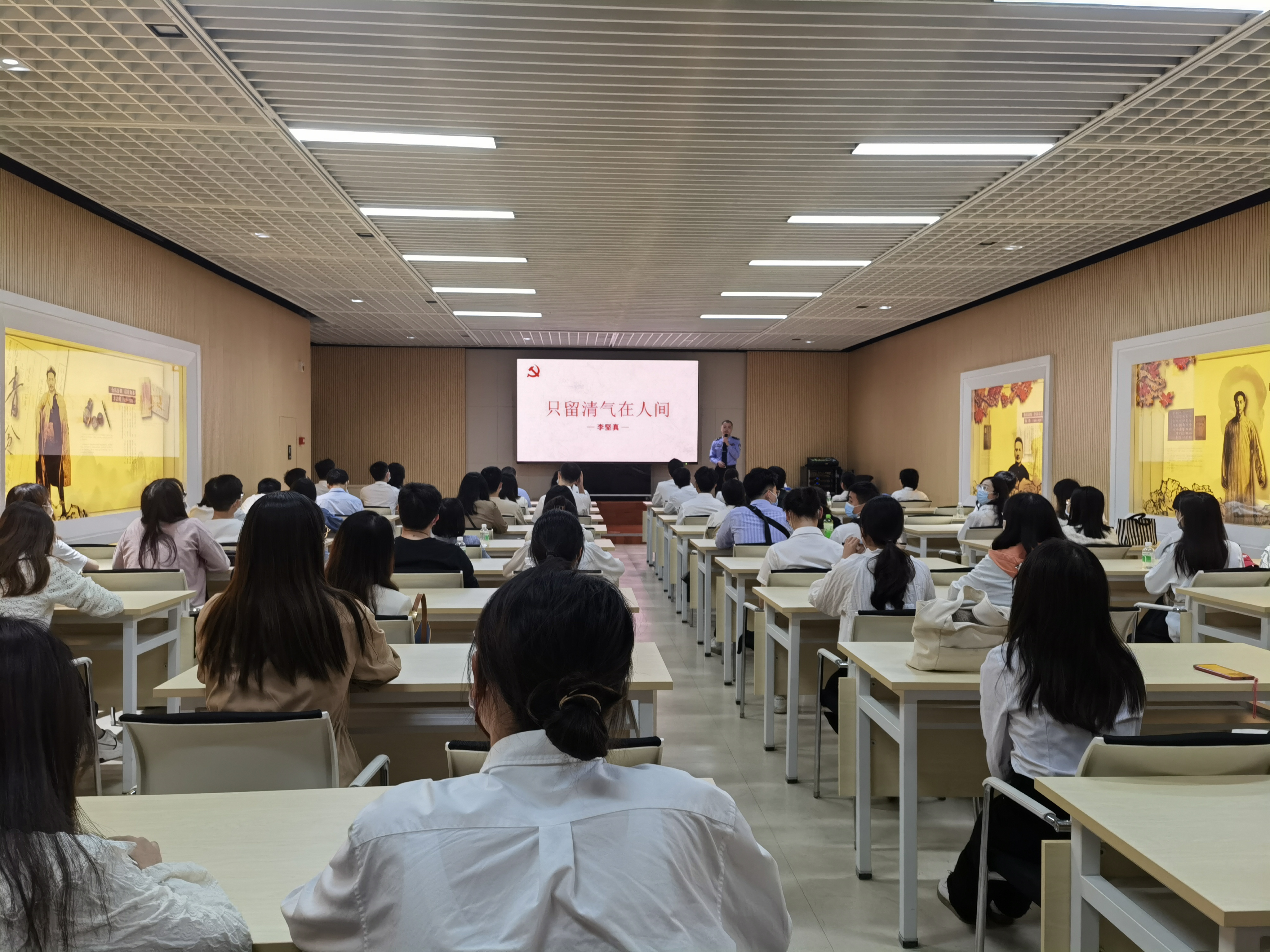 在序厅,全体党员教工面向党旗庄严肃立,举起右手重温入党誓词,砥砺初心使命,汲取奋进力量。在讲解员的带领下,全体新入职教工依序走进“庄严承诺”“砥砺前行”“南粤清风”“党的纪律”等主题展厅参观学习,在“党纪大讲堂”通过廉政微党课:只留清气在人间,聆听学习了李坚真同志的革命传奇事迹和红色家风故事。通过教育学习,大家对“一念放恣则百邪乘衅”“一处松则百处懈”的危害警醒、对“无禁区、全覆盖、零容忍、重遏制、强高压、长震慑”的坚定决心、对“两个永远在路上”的清醒坚定有了更深刻的认识,对“利剑高悬,警钟长鸣”“常思贪欲之害,常怀律己之心”有了更切实的感悟,表示要遵纪守法、严于律己,谨遵师德规范,严守师德底线,立德树人,廉洁育人,在教书育人的岗位上展现新作为、干出新气象,共同营造风清气正的校园生态。
