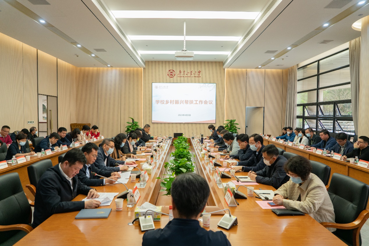 4月3日,学校乡村振兴帮扶工作会议在大学城校区大讲堂第一会议室举行。校党委书记胡钦太,党委常委、副校级干部张学理出席会议。