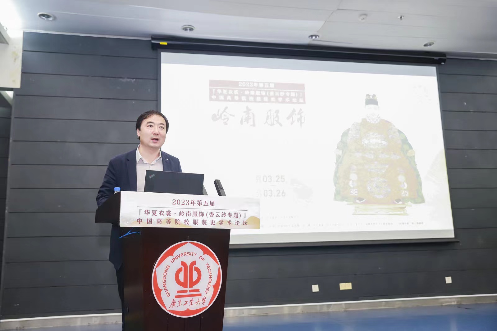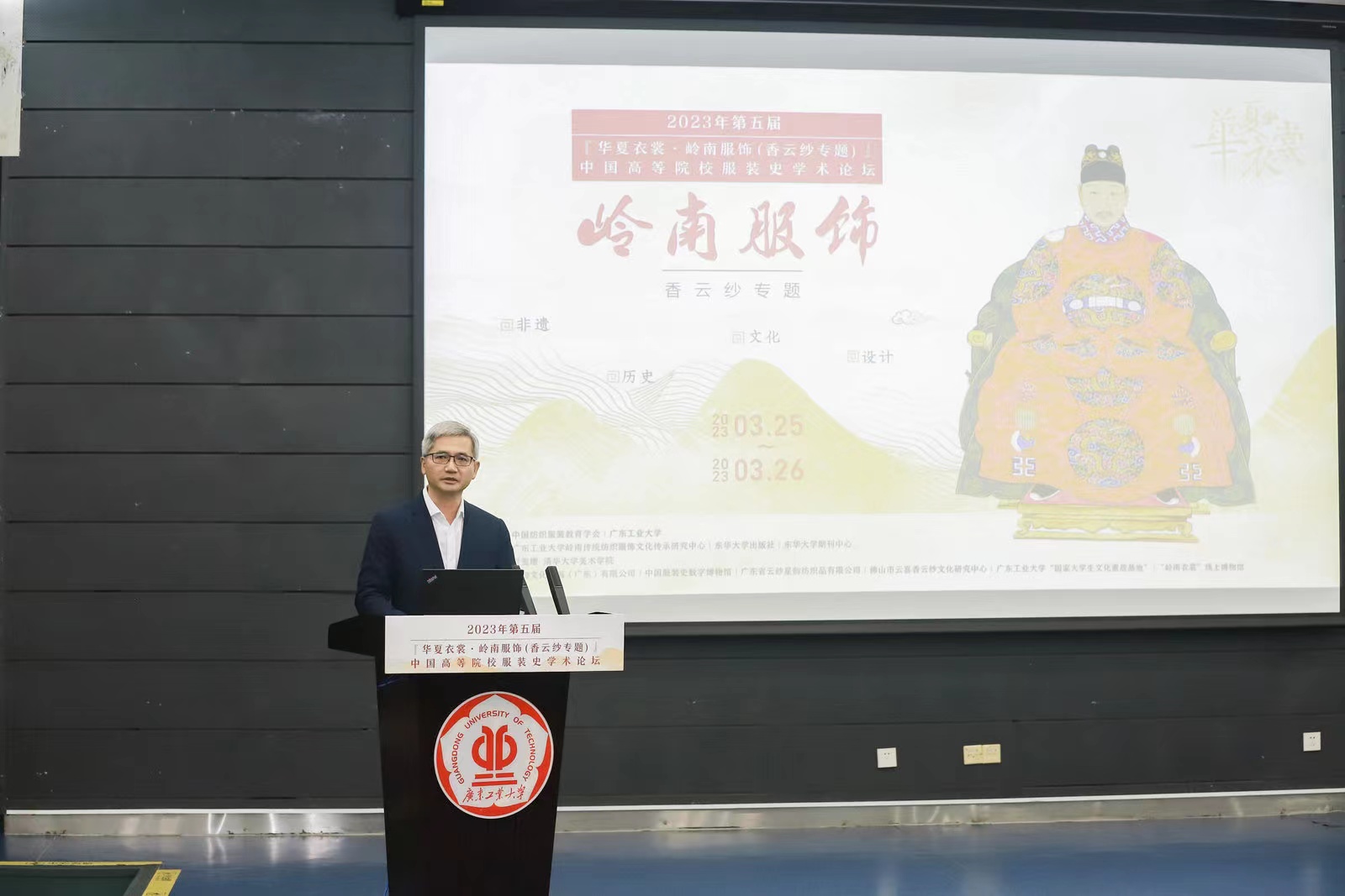 3月25日,第五届“华夏衣裳”中国高等院校服装史学术论坛在华体会·官方版网站登录入口大学城校区大讲堂圆弧报告厅举行。本次论坛由中国纺织服装教育学会和华体会·官方版网站登录入口主办,东华大学出版社有限公司、东华大学期刊中心、通识教育中心、广东省决策咨询基地岭南传统纺织服饰文化传承研究中心承办。中国纺织服装教育学会副会长纪晓峰,华体会·官方版网站登录入口党委常委、副校长陈卓武研究员、东华大学期刊中心主任王克斌、东华大学出版社总编辑周德红、清华大学美术学院李当岐教授在开幕式上致辞,来自清华大学、天津大学、青岛大学、深圳大学、汕头大学、中国服装设计师协会、山东省设计师协会、中法时尚美学、WE未视觉等单位的知名学者、设计师、陈列师,以及全国各纺织服装类学校的老师80多人参加了此次学术论坛。