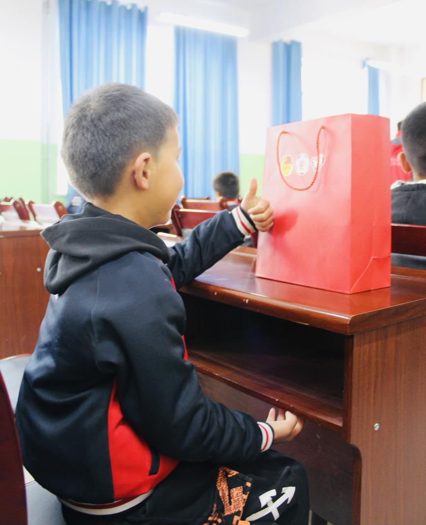 在此次社会实践前,学校团委与伽师团县委联合组织了“助力放飞梦想·青春圆梦微心愿”活动,由伽师团县委征集来自贫困、孤残、留守等需要特殊帮扶和关爱的青少年群体的“微心愿”,学校团委组织发动在校师生认领帮助“圆梦”。第一期“微心愿”清单在发布后不到一个小时就被认领一空,一个排球、一盒画笔、一条舞蹈裙……这些看起来金额不大的小小礼物,像一粒粒微光,带着温暖与爱涌向祖国的边疆。实践团跨越5300多公里,将广工师生的爱心礼物和祝福贺卡亲手送到了伽师县阳光学校的孩子们手上,让孩子们感受到社会大家庭的温暖与祝福。