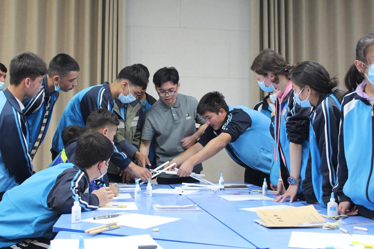 除此之外,来自土木与交通工程学院的实践队员带着力学架构模型走进伽师县第五中学的课堂,为同学们带来了精彩的力学架构科普展示,并与同学们一起动手实践制作桥梁模型、进行加载试验,让同学们感受到了力学的魅力。