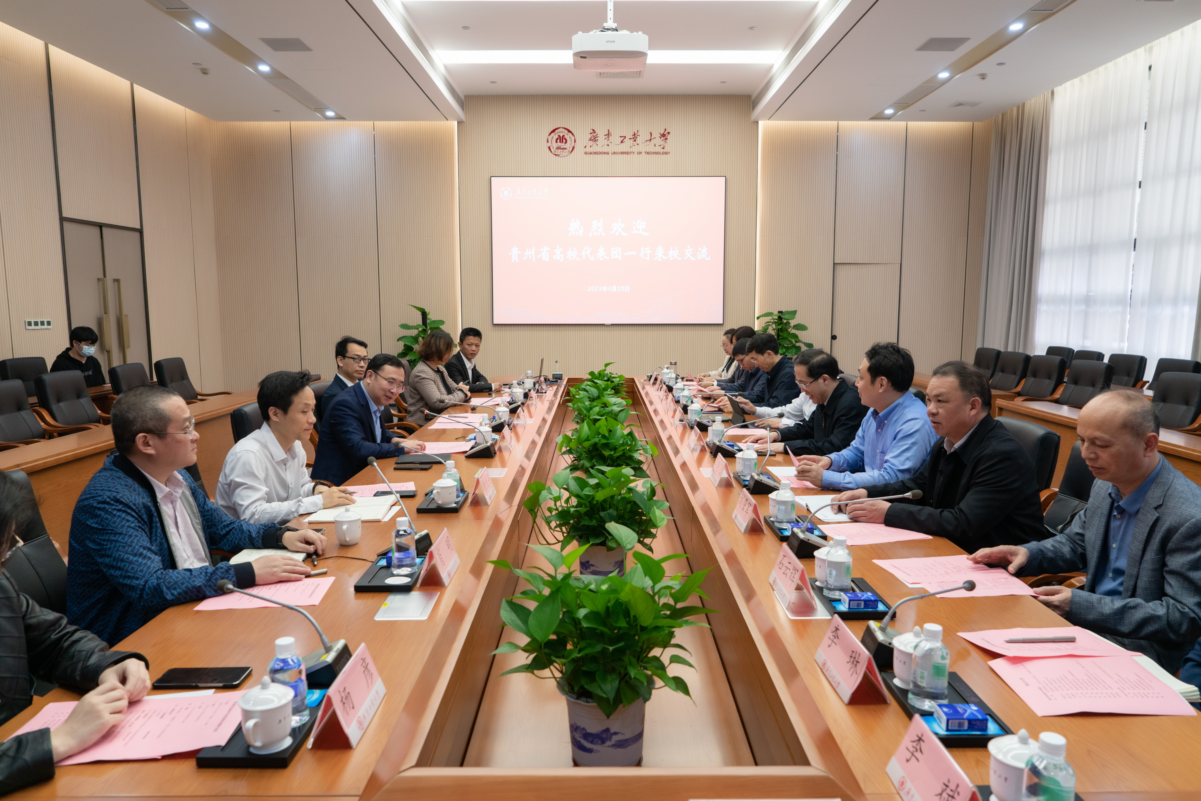 余林代表广工对贵州省高校代表团的来访表示热烈欢迎,介绍了学校的办学历史、特色优势、人才培养及“1+2+3”攀撑计划学科提升工程,他表示,广工本科办学65年来,培养了40多万名学子,为广东经济和社会发展提供了有力支撑,接下来学校将进一步深度融入国家发展战略,服务区域经济社会发展需求,以学校高质量发展助推广东省实现现代化建设新的跨越。