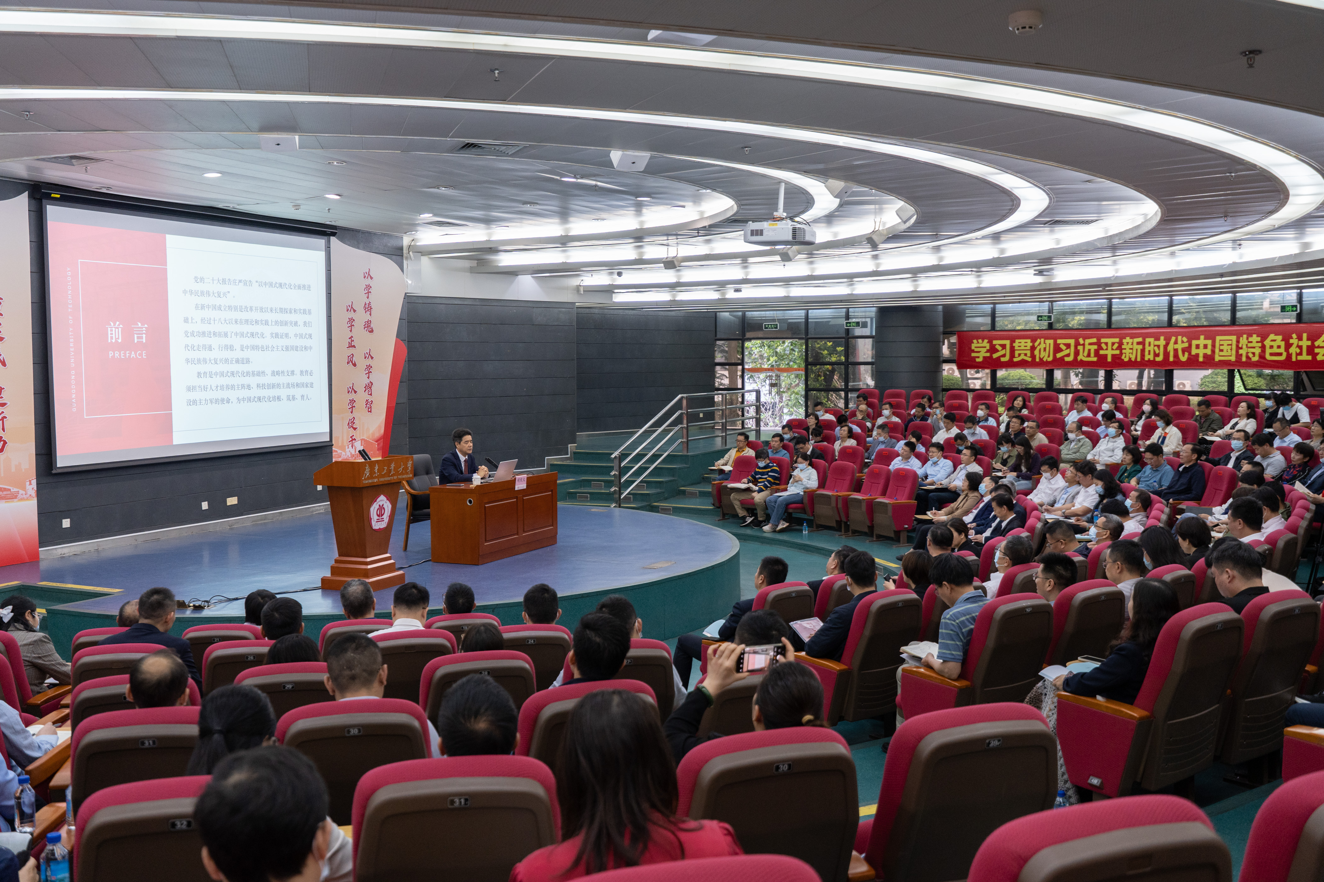 25日下午,胡钦太以“中国式现代化的教育使命”为题作主旨报告。他梳理了中国式现代化的历史进程,阐述了中国式现代化主要特征、重大原则,对中国式现代化理论作了系统介绍;解读了中国式现代化的机遇和挑战,辩证分析了如何科学把握面临的战略机遇和风险挑战;探讨了新时代十年中国教育事业取得的历史性成就,以及教育改革创新面临的严峻挑战,着重从教育、科技、人才三位一体部署,详细阐述了教育高质量发展对中国式现代化的支撑,结合学校实际进行了研究谋划,提出了部署要求。
