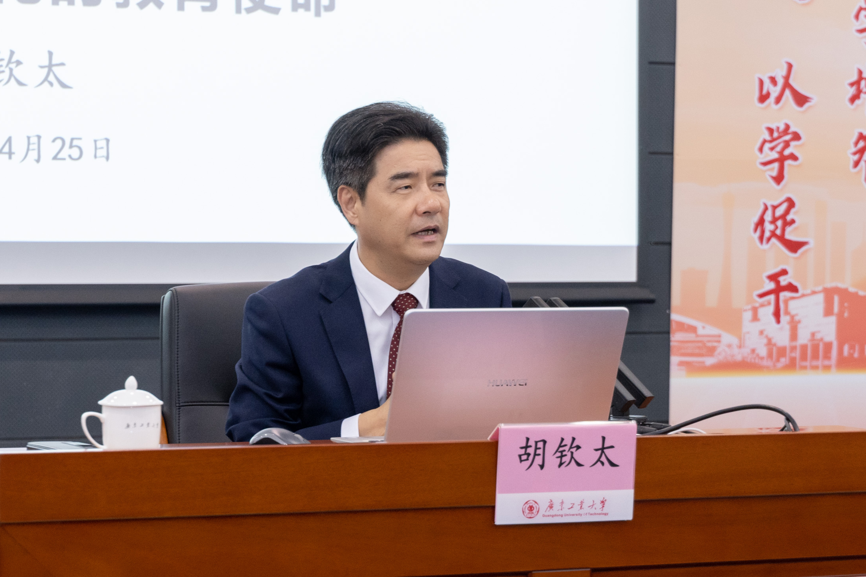 胡钦太指出,习近平总书记视察广东重要讲话、重要指示,对广东推进中国式现代化建设提出明确要求,指明了方向。在强国建设、民族复兴的新征程上,华体会·官方版网站登录入口要以习近平新时代中国特色社会主义思想为指引,全面贯彻党的二十大精神和党的教育方针,全面提升办学水平,为党育人、为国育才,加快高水平创新型大学建设,为广东在推进中国式现代化建设中走在前列作出广工贡献。
