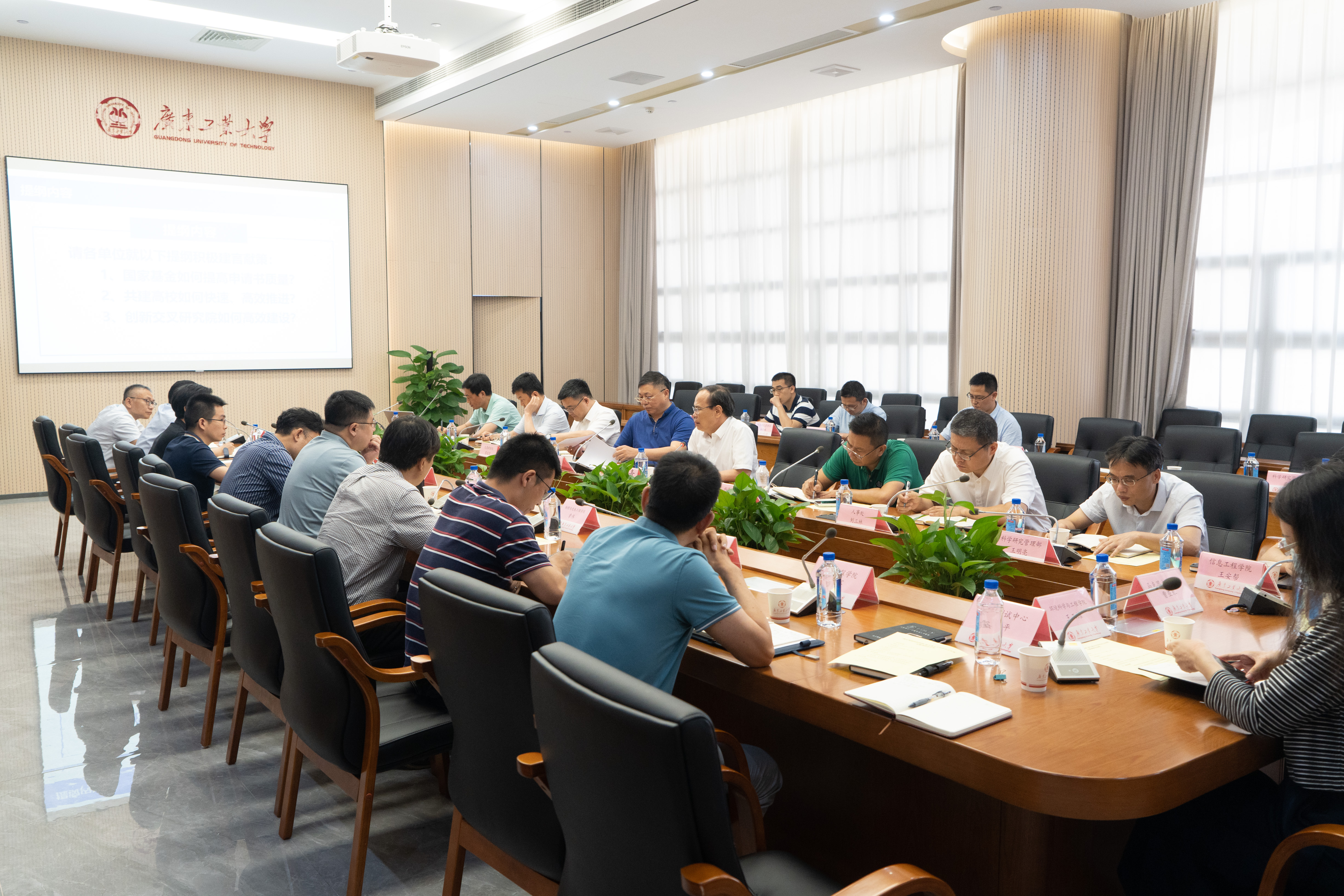 本次会议由王成勇主持。他提到,学校的科研创新工作在近年来借助高水平大学建设得到快速发展,但现在遇到了发展瓶颈。因此,需要进一步深化有组织的科研,推动学校科研工作的高质量发展。此次调研会的目的是深化科研体制机制创新,强化有组织的科研,提升服务地方社会经济发展能力。