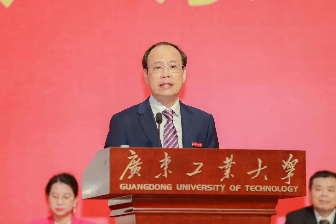 “回想多年前,来自五湖四海的你们满怀憧憬走进校园,成为广工新人;今天,你们又将走向天南地北,拥有一个新的身份——广工校友。”校长邱学青以《人生不设限 攀撑赢未来》为题发表讲话。他深情回忆了同学们在校园生活的青春印记,与广工共同成长的点点滴滴,为同学们在青春的征程上不设限、不服输、不畏难,始终展现出敢挑战、不放弃、勇争先的“广工精神”点赞。