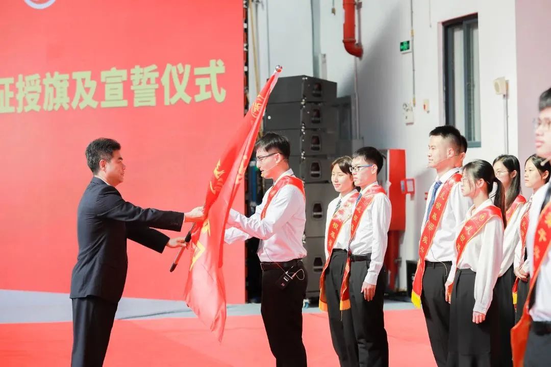 仪式上,毕业生们带着母校的期望、师友的祝福,由投身不同就业领域的优秀代表组成的“基层就业服务团”“大国工匠接班人”“科研创新攀撑者”登台,接受学校党委书记胡钦太授旗,出征奔赴梦想大舞台。
