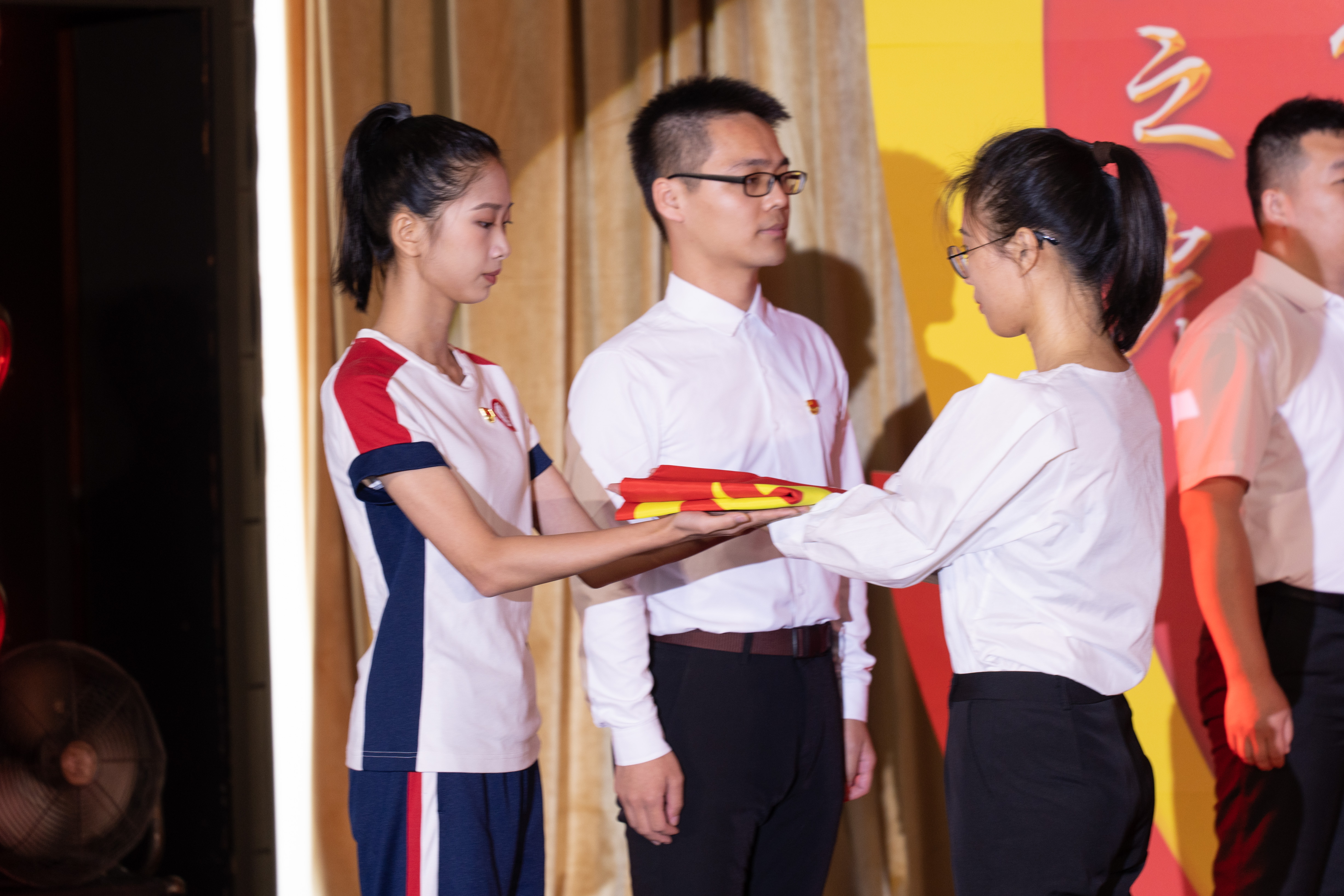 党旗在校区之间的传递象征着坚守传承
