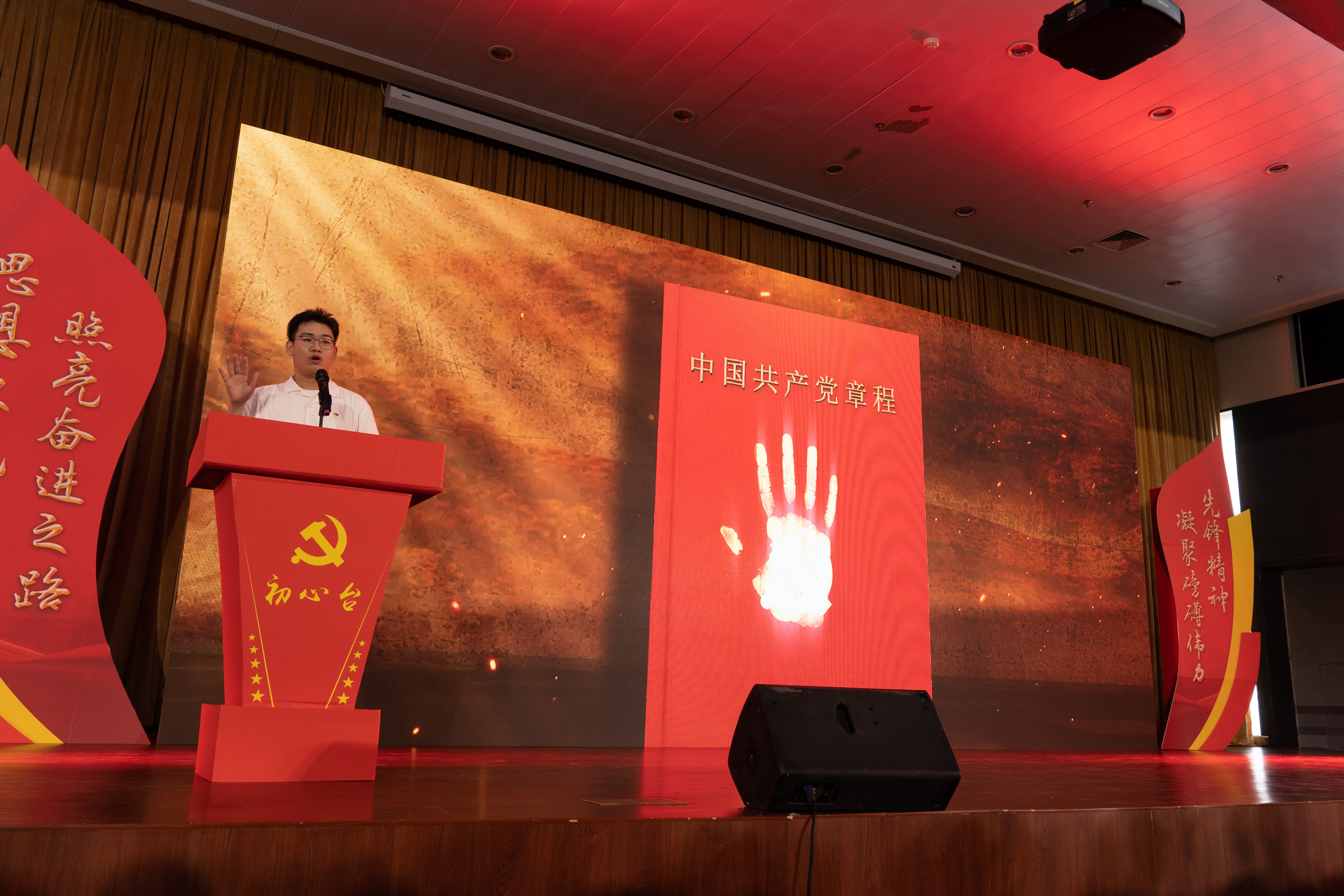 一面旗帜映初心 一颗红心永向党。《薪火相传》视频中,党旗在各校区之间传递;活动现场,入党介绍人为今年新发展的党员佩戴党徽,象征着在坚守传承中,信仰之火熊熊不息,精神之光更加璀璨。