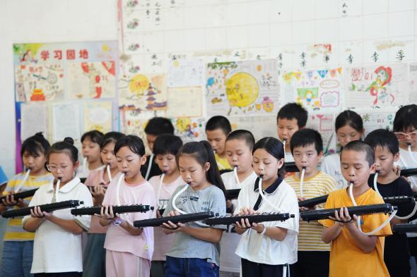 “孩子们基础薄弱,我们就慢点教,把基础打扎实点,他们今后的学习才能更有质量。”蒋臻老师说,这对她来说也是一次学习的机会,“口风琴课不只是教演奏,而是要通过简短的课程让他们感受艺术,理解艺术。”