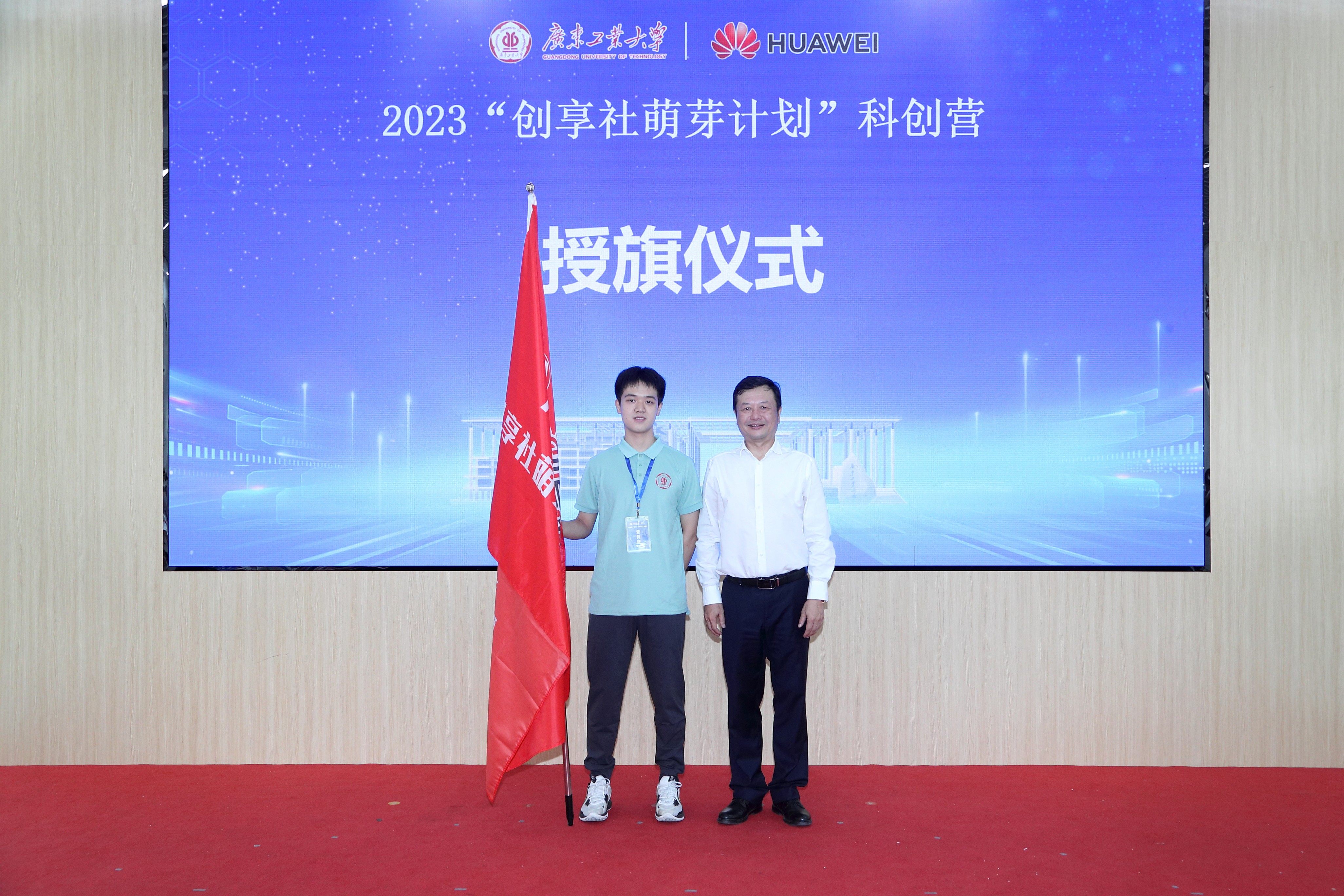 张学理为本次科创营授旗,标志着华体会·官方版网站登录入口为广州优秀高中生悉心打造的科技强国梦想号正式启航。